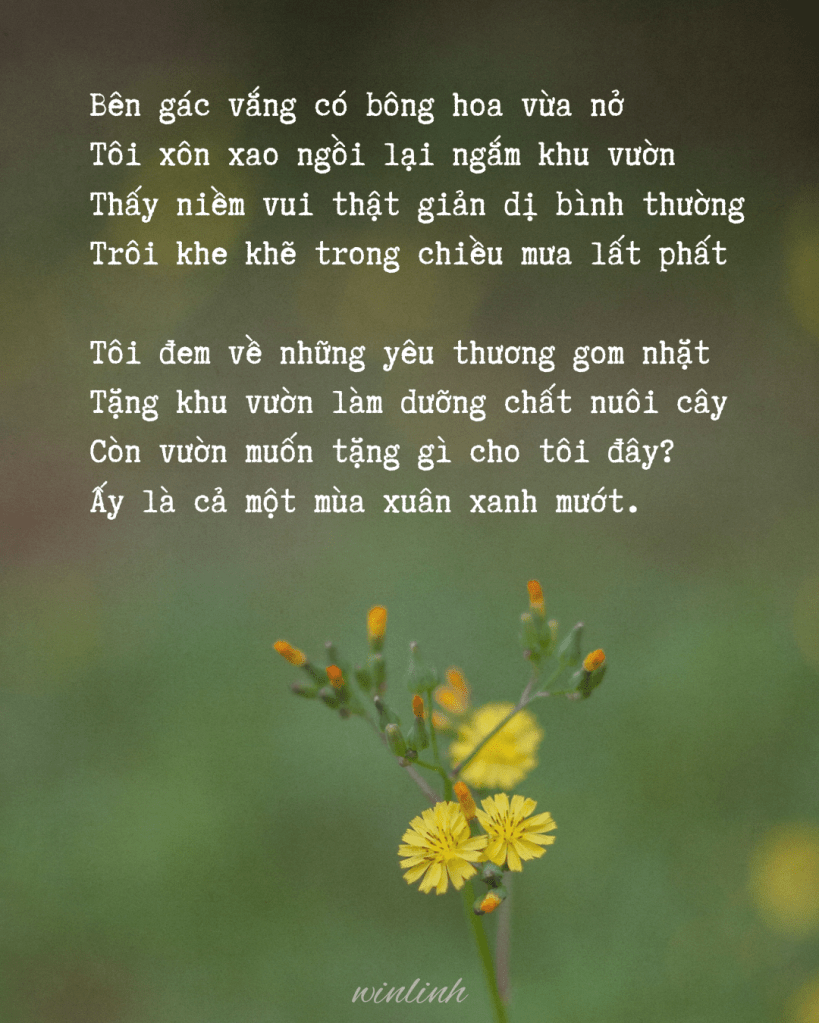 5. Đọc từ từ, thưởng thức từng chữ, thảnh thơi từng câu. Nghe trong trang giấy cả nhịp đời sống động với nắng nhảy nhót, gió hây hây, mây bồng bênh và hoa bung nở… Tận hưởng mọi thứ chậm rãi và dịu dàng, thấy cái gì cũng đáng yêu, đáng mến.