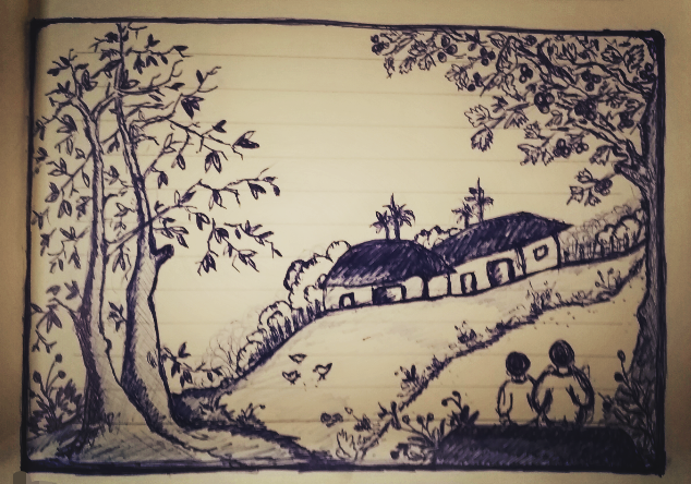 Vẽ cái này trong một buổi sáng lạnh giá mờ sương. Không có ý tưởng, chỉ là tay cứ đưa đưa rồi ra quang cảnh như vậy.