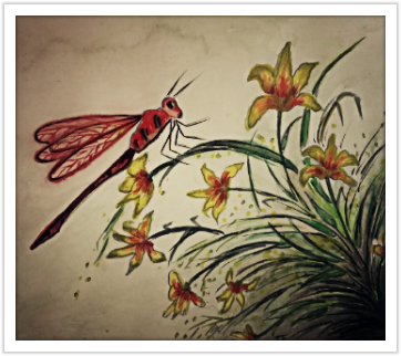 Vẽ rải rác trong ngày hôm nay, tranh thủ lúc rỗi. Bộ hoa chuồn chuồn dành cho em Hằng treo trong bếp. Còn ngô nghê, nhưng vui vì vẽ bằng sự hồn nhiên và háo hức cảm nhận được từ chính em.
