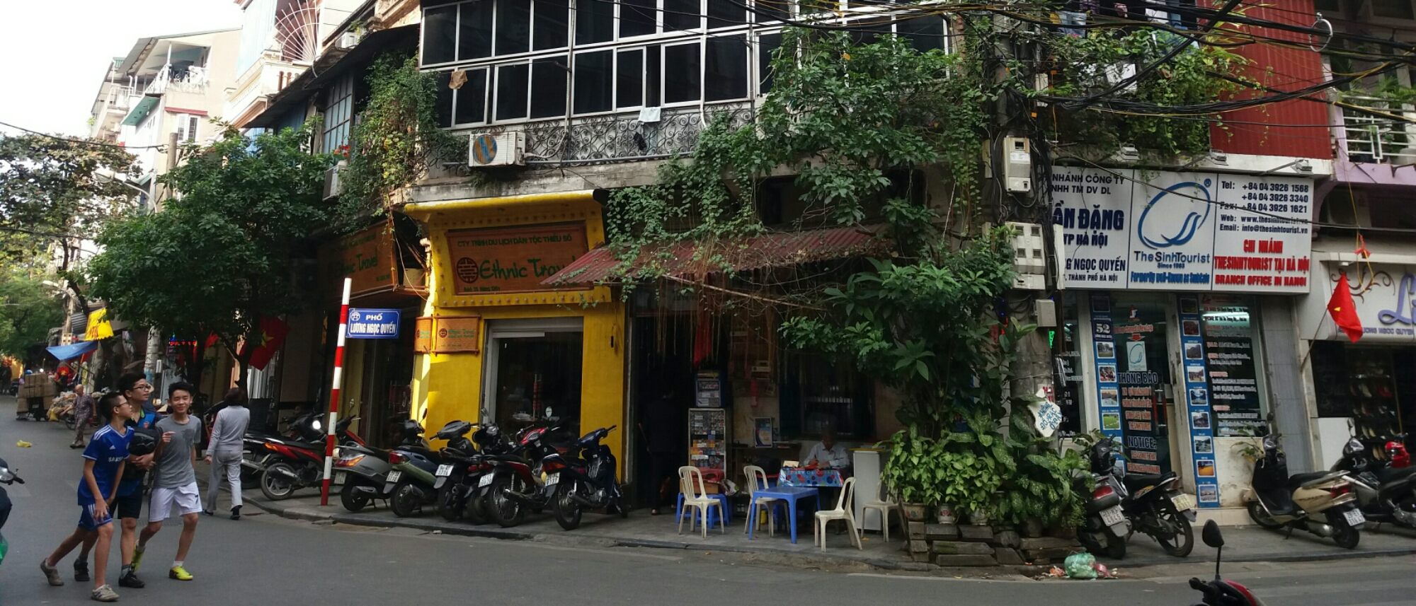 Từ beer 2ku nhìn sang trong nắng vàng ngôi nhà cổ rất đẹp. Tiếc là dây điện lằng nhằng đã chắn hết cả phần mái phía trên. Lúc đó chuẩn bị chia tay Ngọc và Yến để về. Điện thoại bấm một lần rất vội.