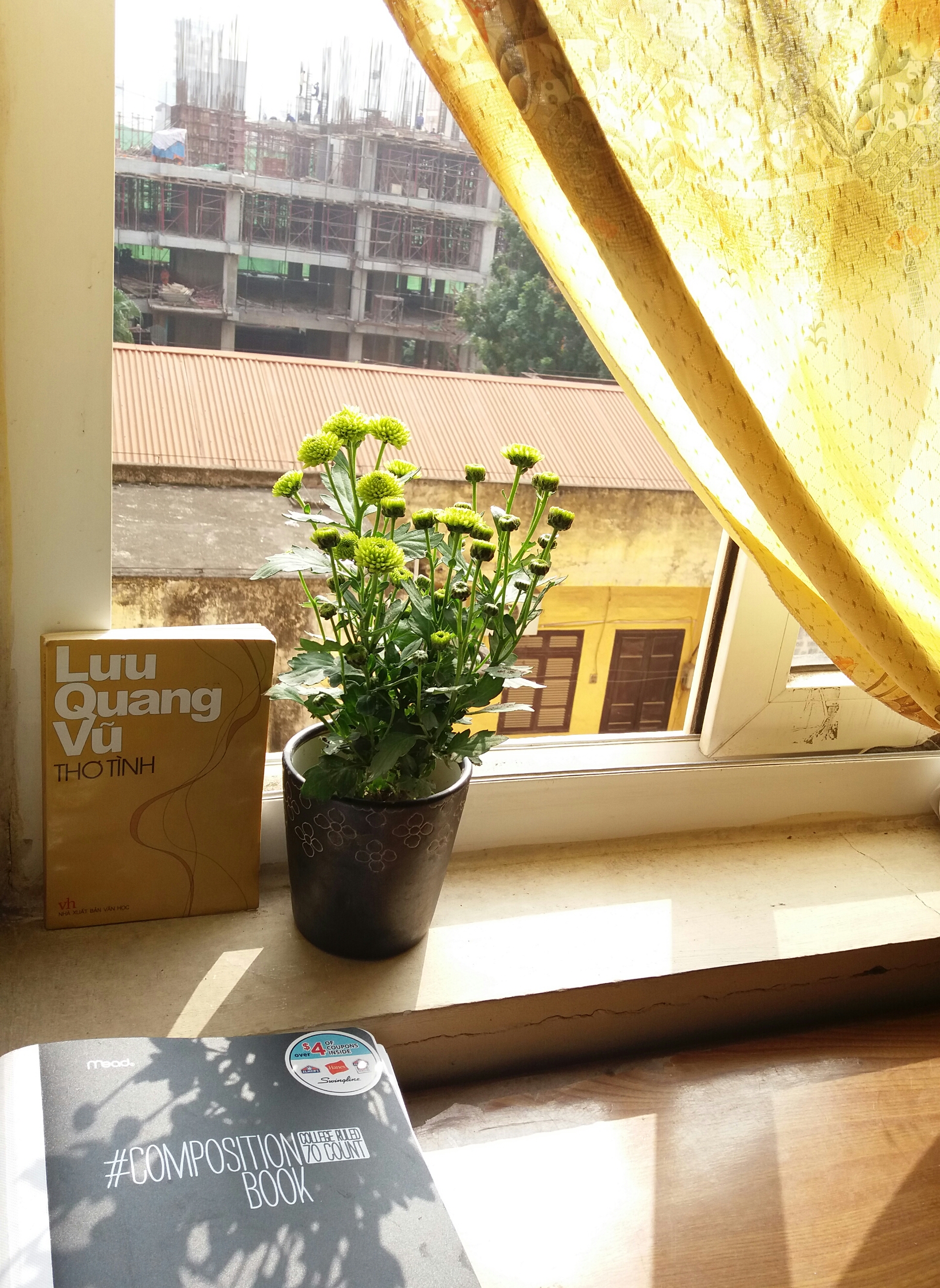 Phòng ký túc êm ả một sáng mùa đông có nắng. Hoa cúc xanh mới mang đến nữa. Không khí thích lắm khi được ngồi một mình và nghe đài.