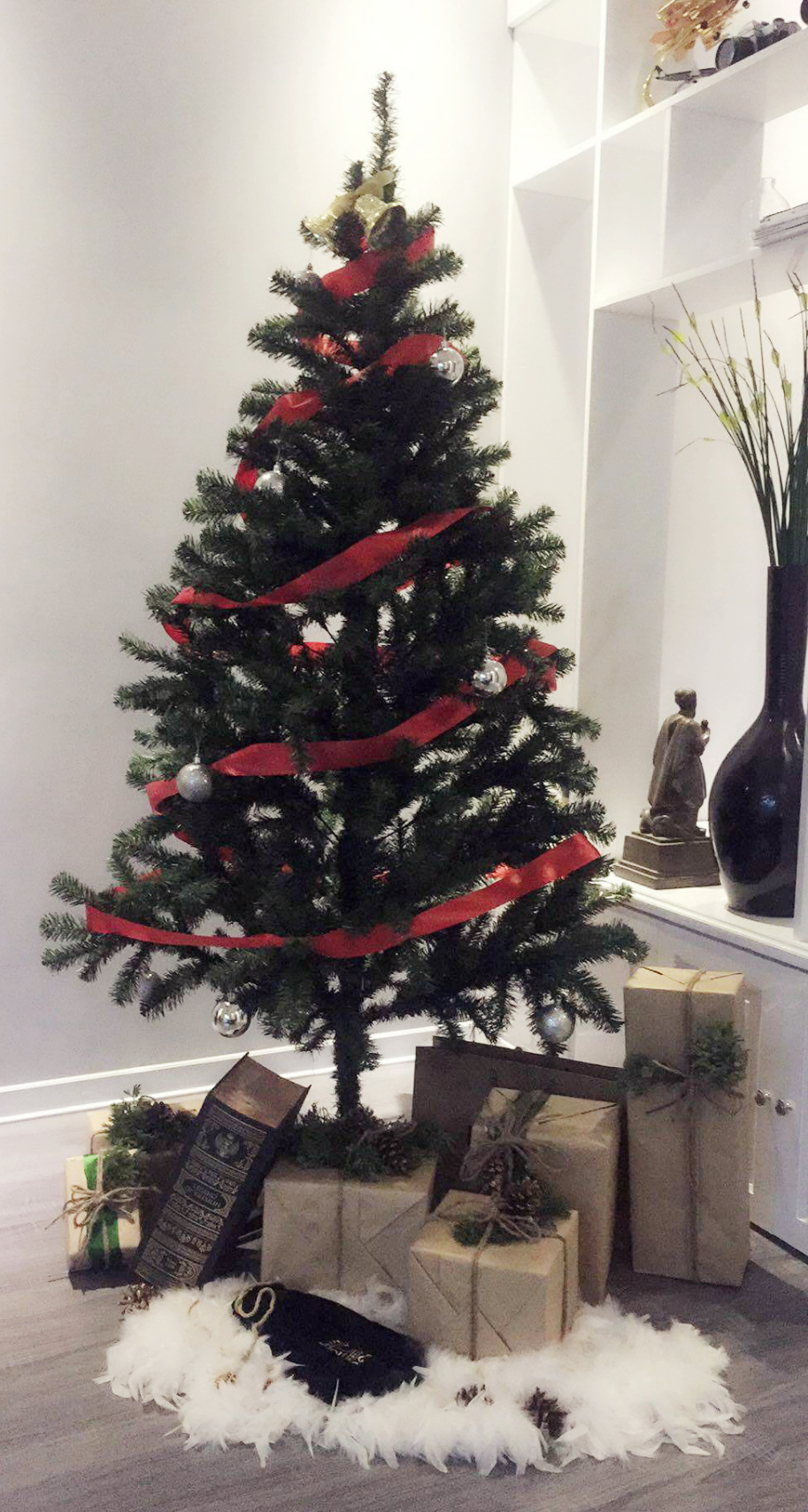 Hì hụi gói gém dưới sự giám sát của Bi. Ahihi, dưới chân cây thông noel đầy những hộp quà dễ thương đến dễ sợ.