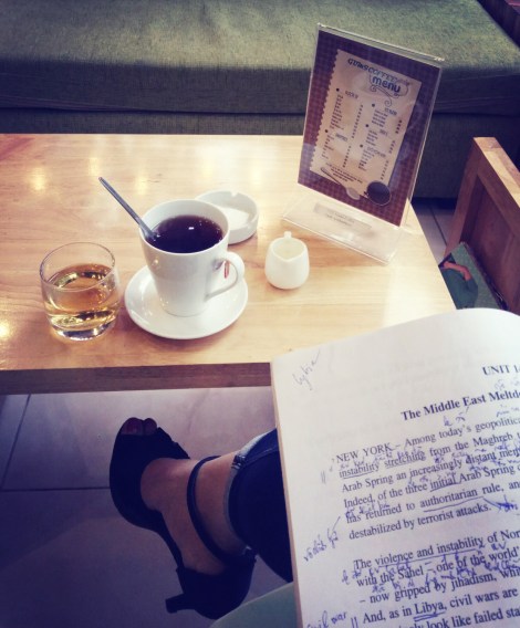 Ngồi một mình, hôm nay ngồi một mình. Không phải lãng mạn hay tâm trạng gì đâu. Tại đi học muộn thành ra phải đợi hết tiết mới vào được. Linh Đàm có quán mới, đi qua thấy hay hay ghé ngồi. Mưa và lạnh. Khoảng không màu xám. Thành phố dường như có chút cô đơn.
