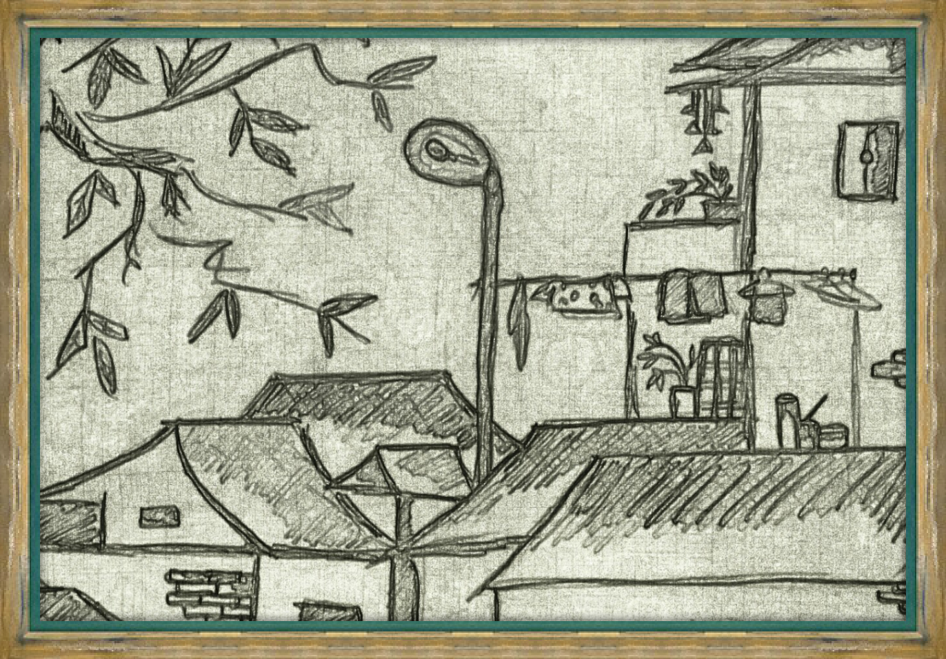 Là tranh chì. Tuy chiếc cột đèn ngay giữa tranh nhưng vẫn không nỡ bỏ đi. Có những cái vốn là không đúng trong quy tắc nghệ thuật nhưng vì mình không làm nghệ thuật nên chẳng ai thèm phán xét những bố cục phi lý ấy.