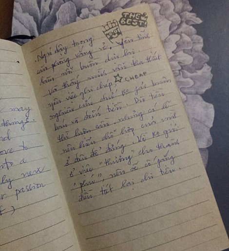 Lâu nay tuy vẫn duy trì việc dùng sổ nhưng không ghi chép được đều đặn như trước. Sổ trên giá xếp hàng dài, hôm nay mở lại thấy những kỷ niệm xổ tung ra. Việc lưu giữ ký ức dù là theo cách nào (ảnh, nhạc, vẽ, viết, trí nhớ…) đều có những giá trị riêng và khiến ta được sống lại nhiều lần cảm giác của ta tại thời điểm lưu giữ ký ức ấy.