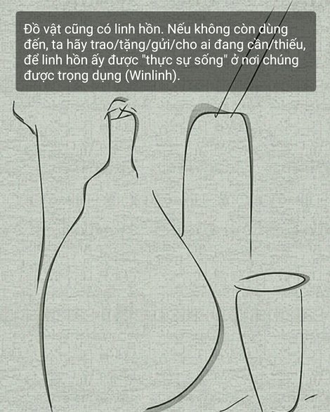 Tình cờ là mấy hôm nay mình đọc ở đâu cũng có nhắc đến việc đồ vật cũng có linh hồn. Mình cũng giống bạn, càng lớn càng muốn không gian xung quanh mình gọn gàng và thật sự biết mình cần gì hơn 😀 Chúc bạn một ngày vui.