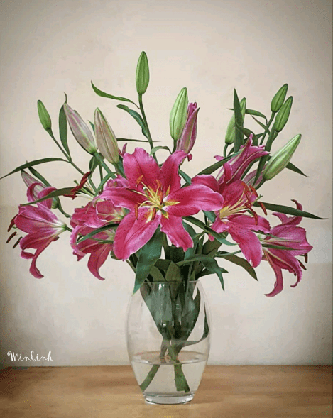 Thật khó để tìm góc chụp đẹp ở chốn làm việc khi đồ đạc máy móc nhấp nhô khắp chốn. Để chụp được bình ly này, tôi đã phải dẹp đi một số thứ lộn nhộn. Bàn cũ, tường cũ, background chả như mơ. Thành quả tuy không lung linh nhưng cũng khiến tôi tạm hài lòng bởi điều kiện chỉ có thế thì không yêu cầu cao quá được. Với nhiều người, họ có thể chỉ ngắm, nhưng với tôi thì phải lưu giữ theo cách cụ thể hơn là chụp lại. Để dẫu khi hoa đã tàn, đã vùi cánh trong đất, hòa tan vào thinh không, thì nghìn năm sau sắc màu này vẫn hiện hữu với đời, bất tử.