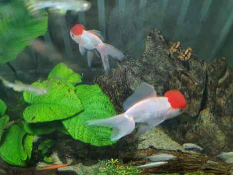 Đôi cá Bạch đỉnh hồng hôm nay đã về bể nhà tôi. Mà tôi cứ thích gọi chúng là mũ nồi đỏ cơ. Nhìn cái đầu ngồ ngộ như là đội cái mũ nồi cho mùa đông sắp tới ấm hơn ấy.