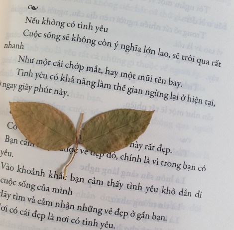 Nghĩ lại, tôi chưa khi nào ngừng việc ép hoa lá, bởi nó quá đơn giản, bởi nó giống như là thói quen. Khi có một chiếc lá hay một bông, một cánh hoa rụng hoặc héo, vô thức tôi lấy chúng kẹp vào sổ. Rồi quên đi. Và lúc nào đó mở sổ ra, những cánh hoa cánh lá đã nằm đó mỏng tang mà màu xanh đôi lần còn tươi như mới hôm qua vậy.