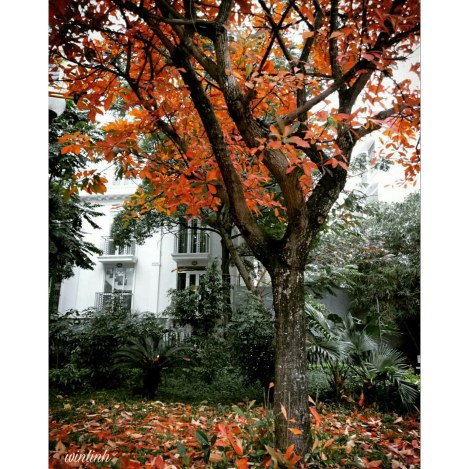 Đây là cây lộc vừng phải không nhỉ? Tôi chụp cái cây này vào một ngày cuối tuần của năm 2018, khi bước ra từ quán cafe Tùng book ngay gần đó. Không gian xung quanh cùng ngôi nhà làm nền phía sau khá phù hợp với cái cây. Tất cả toát lên vẻ nên thơ, tĩnh lặng và thư thái hiếm thấy. Một đời cây, một đời lá. Lá xanh rồi lại lá vàng. Cây con rồi lại cây lớn. Đời người cũng thấm thoát thoi đưa…
