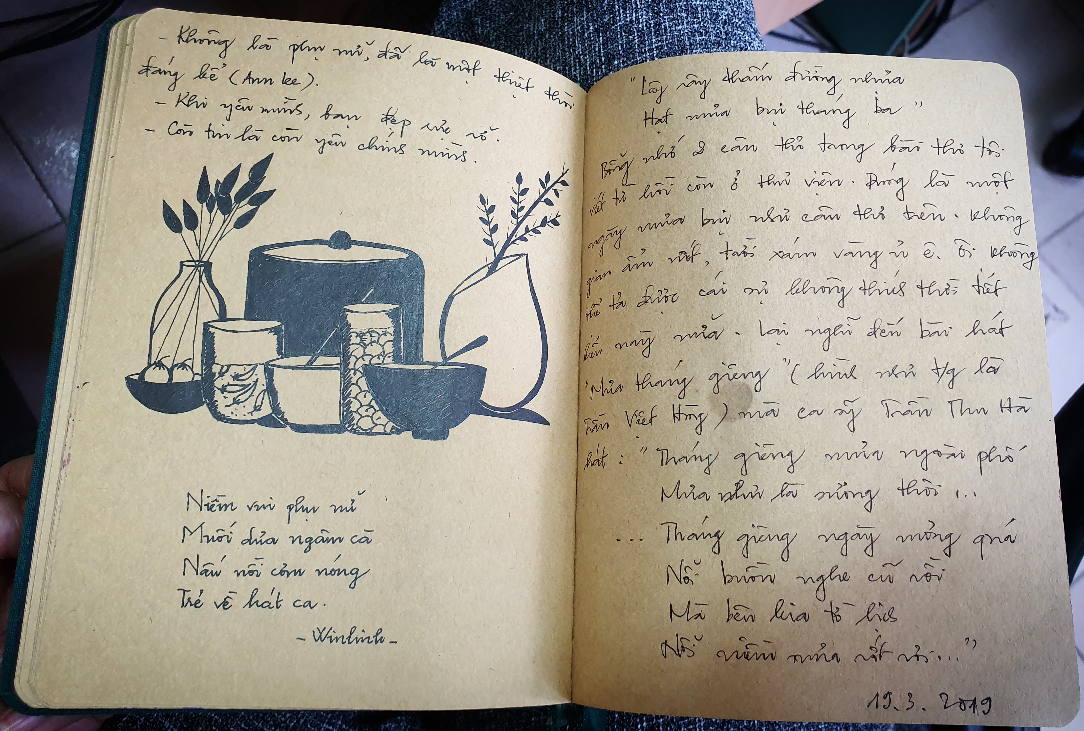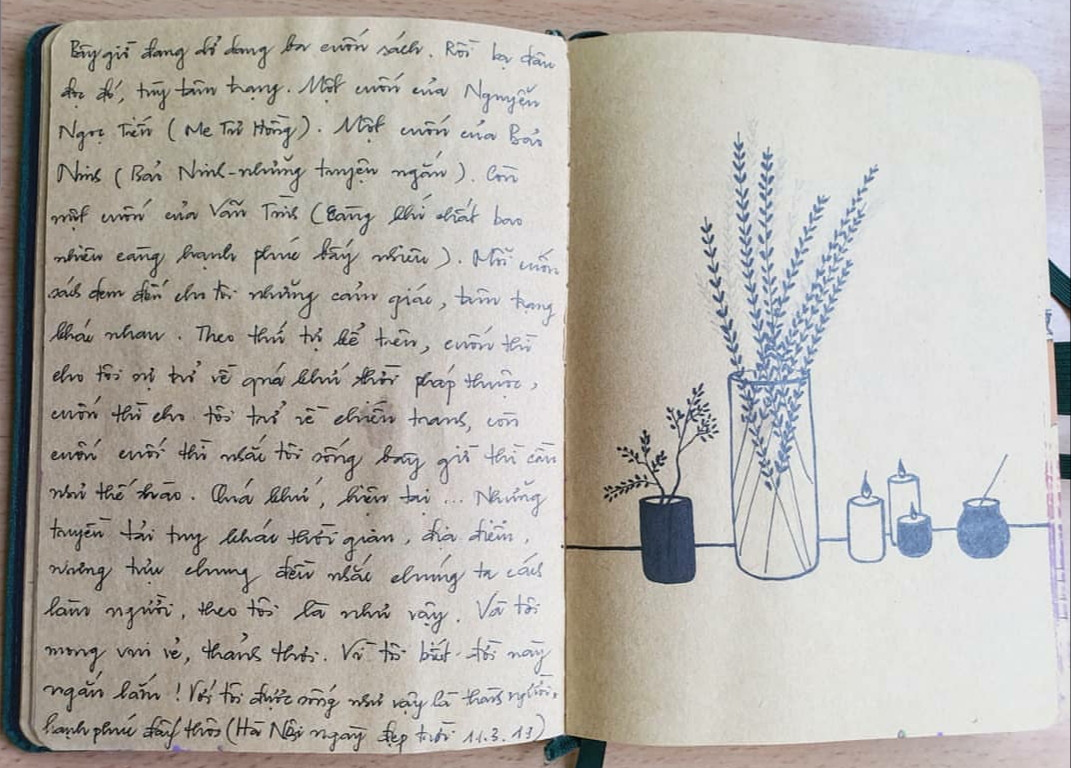Tôi là đứa cực kỳ cuồng sổ. Sổ với tôi là thứ vô cùng cần thiết. Sổ không chỉ giúp tôi ghi chép, trích dẫn, viết ý tưởng, vẽ vời mà còn giúp làm dịu êm tâm hồn hay nghĩ ngợi của tôi.