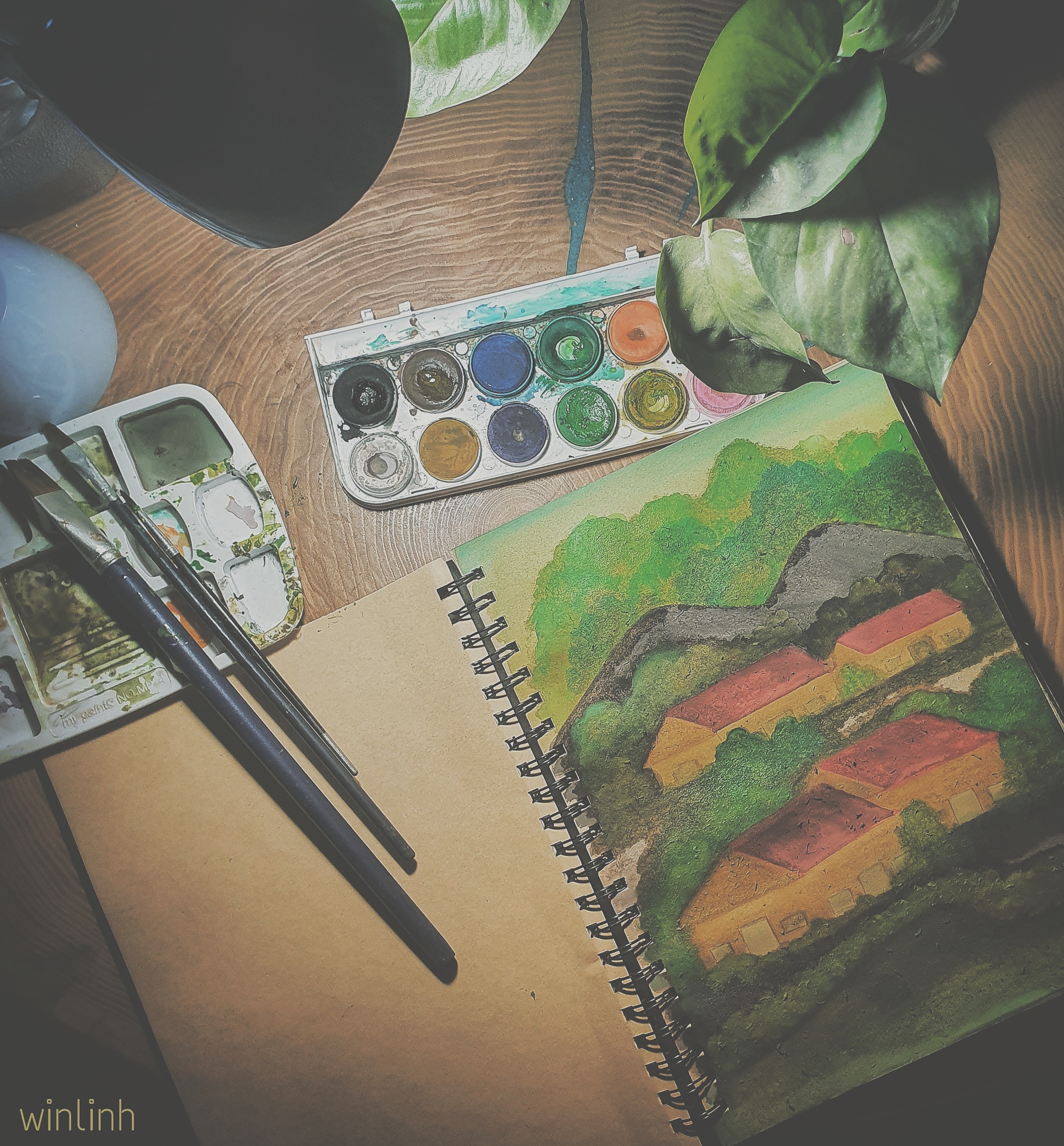 Tối thứ 7, ngồi nghe truyện và vẽ một bức tranh mầu nước trong vắng lặng. Vừa nghe, vừa vẽ, vừa nghĩ mình đang sống với khoảnh khắc dễ chịu này đây. Bận rộn trong ngày để có một tối thư thả. Để bù đắp và cân bằng lại những thứ mình không thể thích nghi trong nhiều quãng khác của đời mình.