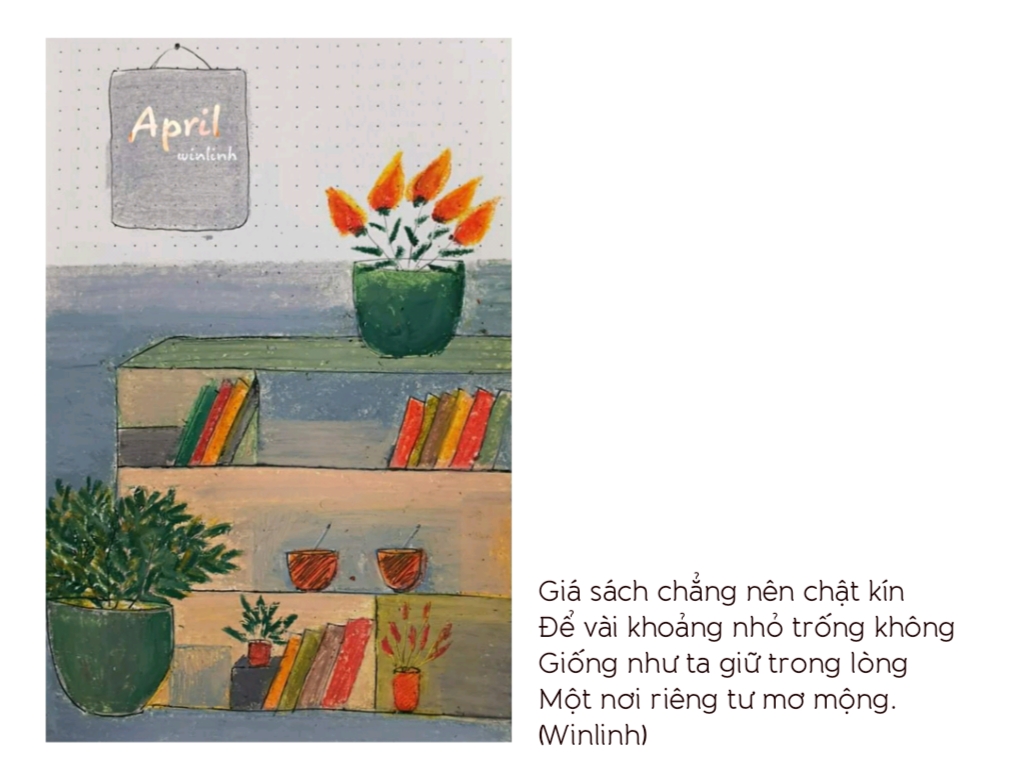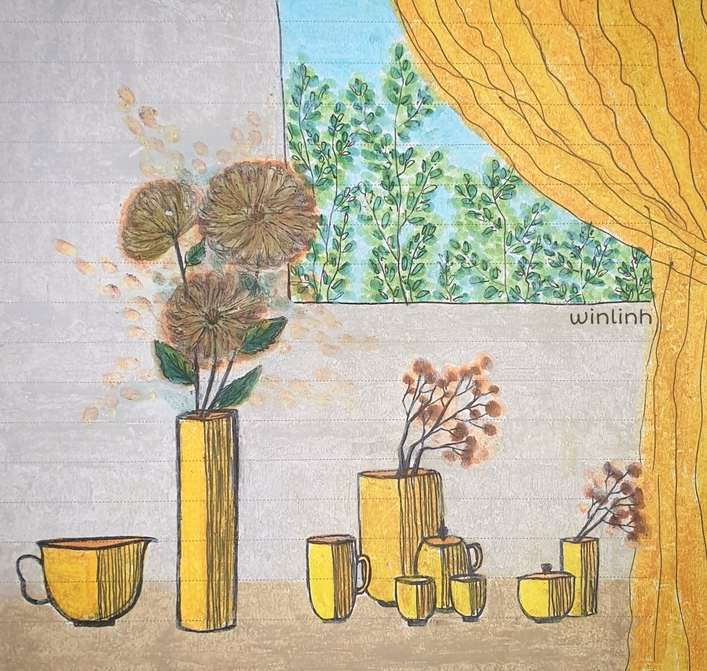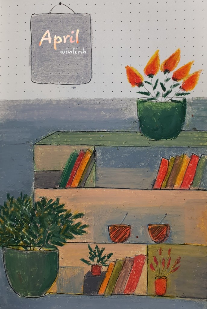 Sang tháng tư rồi mới nhớ tháng ba còn bức này chưa đăng blog. Hà Nội hôm nay mưa phùn ẩm ướt, đường vắng người thưa. Đến chỗ làm xong lại có chỉ định cho nghỉ, lại về. Về nhà chả buồn được vì có nhiều việc để làm lắm luôn. Con cái, nhà cửa, cơm nước, chưa kể những việc cá nhân rất vô vàn (xem phim, thanh lọc – số hóa tư liệu bản thân, vẽ, viết, hát và đọc sách…). 9 ngày tới ở nhà làm cũng không hết việc.