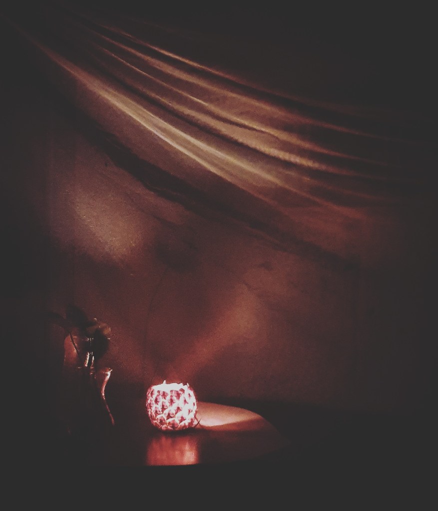 Đây là chiếc đèn dứa mà tôi tự chế. Khoét quả dứa ra và thắp nến bên trong, thơm và sạch.