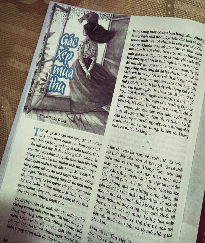 🍀 Tôi đi chân trần vào nhà, nền nhà dường như không vương một chút bụi. Tôi hình dung ra dáng mẹ sáng sáng đưa những đường chổi mềm trên vỉa hè rồi ra sân giặt giũ, phơi phóng. Tôi nhớ lại tôi những ngày thơ bé tha thẩn trong vườn nhặt đủ thứ lá rụng chơi đồ hàng cùng mấy cô cậu bạn hàng xóm. Nhưng trong ngôi nhà nhỏ này, đặc biệt và thân thuộc nhất với tôi chính là căn gác xép. Gác xép có khuôn cửa sổ gỗ nhìn ra khu vườn um tùm lá với chiếc bàn học nhỏ xinh cùng một giá sách đầy. Đúng là một giá sách đầy, bởi ông ngoại tôi là nhà nghiên cứu văn hóa, đã sưu tập gìn giữ sách suốt bao năm. Trước ngày ông mất, ông đã để lại cho tôi toàn bộ số sách với hy vọng tôi sẽ trở thành người ham đọc sách và đam mê nghiên cứu. Cái thế giới đầy thanh bình ấy với tiếng gió vườn xào xạc ngày ngày đã theo tôi đi hết 12 lớp học. Rồi đến một ngày tôi được trở thành cô sinh viên khoa Thư viện của trường Đại học Văn hóa Hà Nội. Tháng năm mải miết, chỉ có khu vườn, căn gác xép vẫn nằm nghe nắng mưa và ngóng bước chân tôi về. Và lại đến một ngày tôi tốt nghiệp, con đường phía trước thật khó hình dung, khiến tôi không khỏi có nhiều lo lắng…