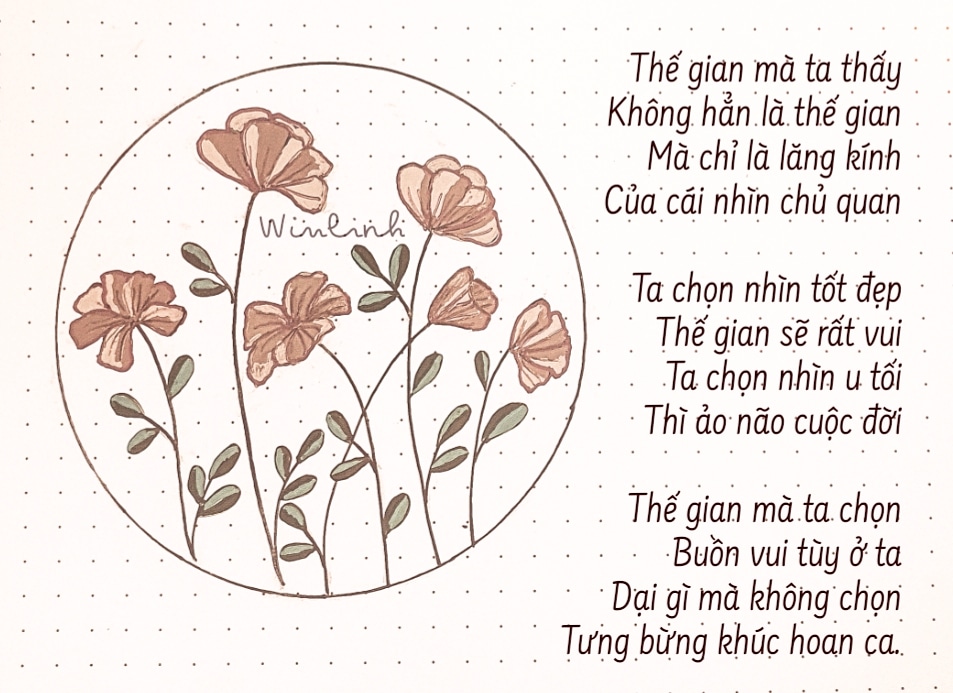 Có vẻ việc tôi chọn nhiều bông hoa nở là rất dại, vì nó có đời sống ngắn hơn bông nụ. Nhưng tôi thích sống cho thực tại. Thực tại là tôi được ngắm một bông hoa đang nở, không phải đợi tới ngày mai. Vì ngày mai tôi đâu chắc còn được ngắm hoa nở nữa hay không.