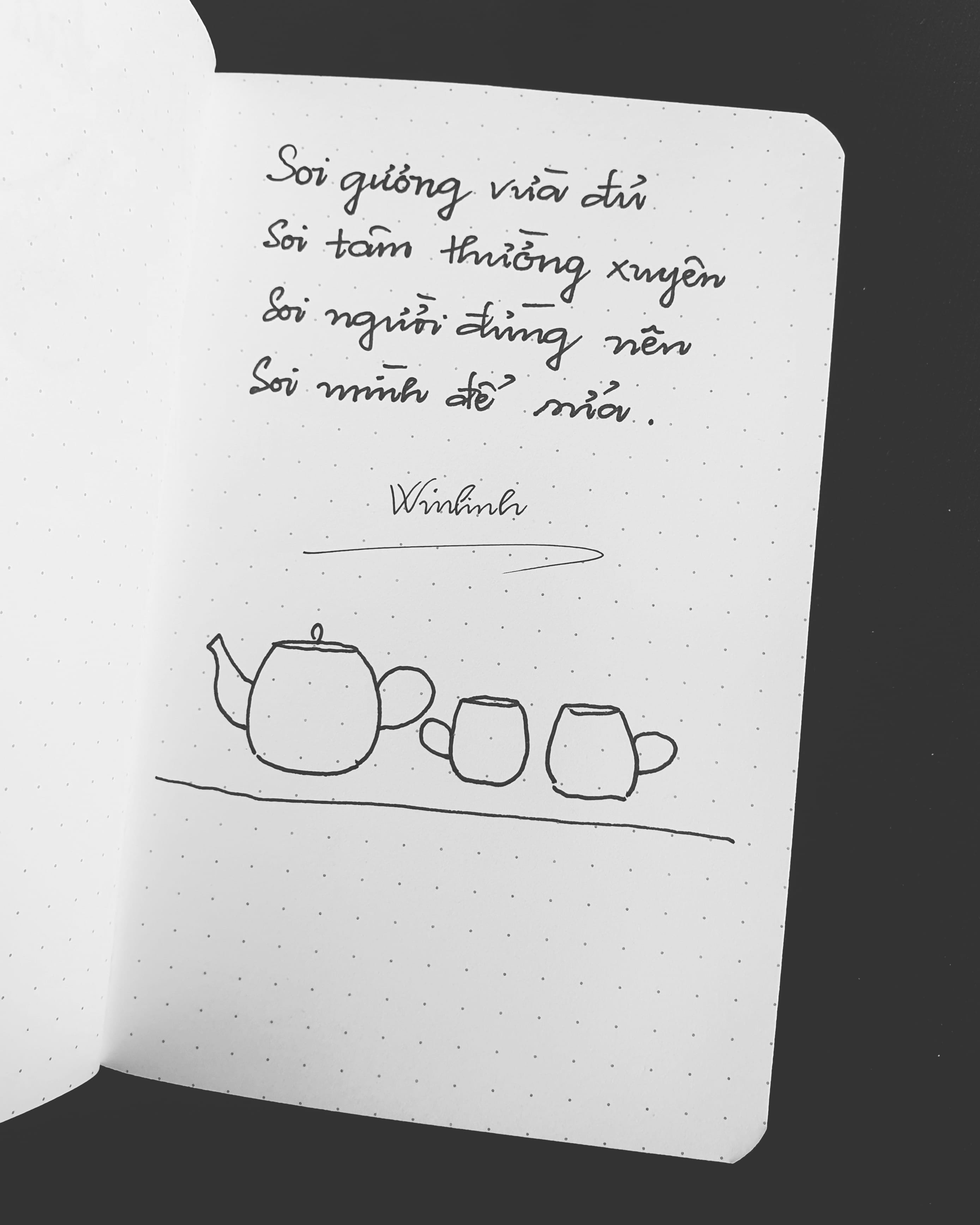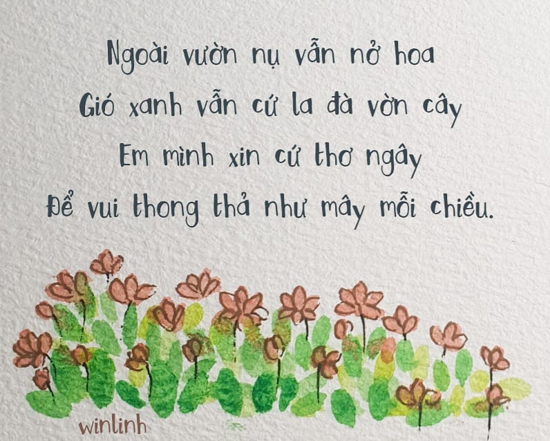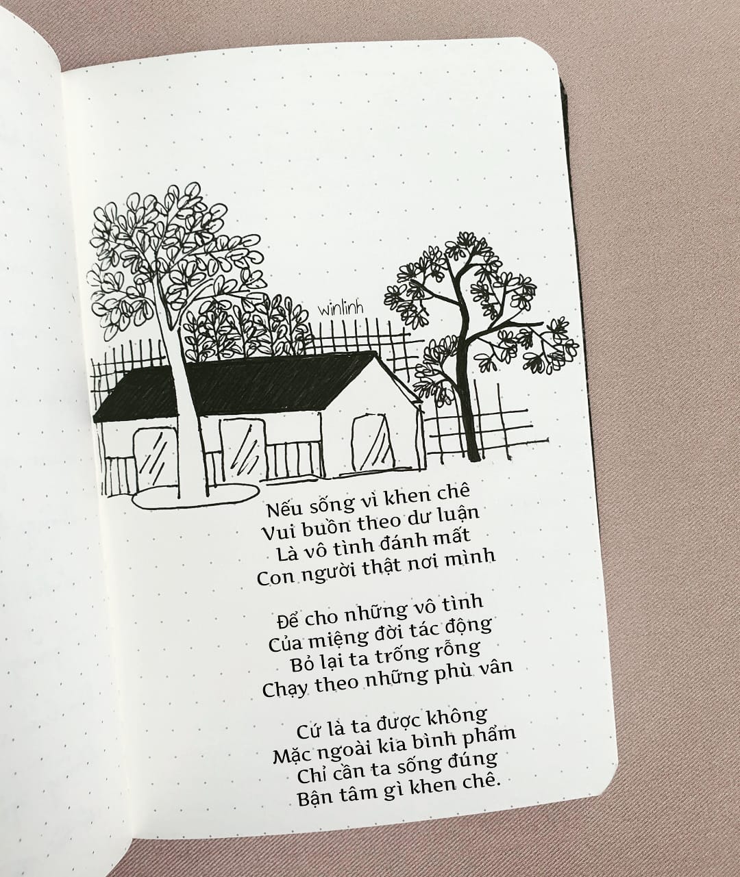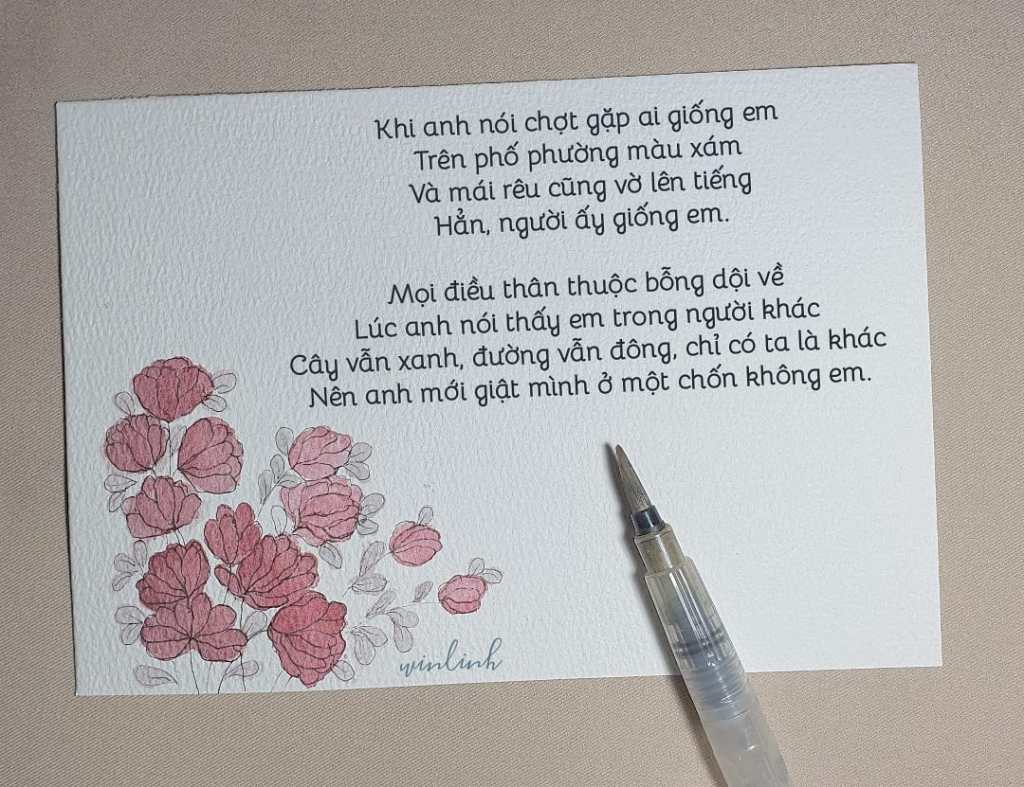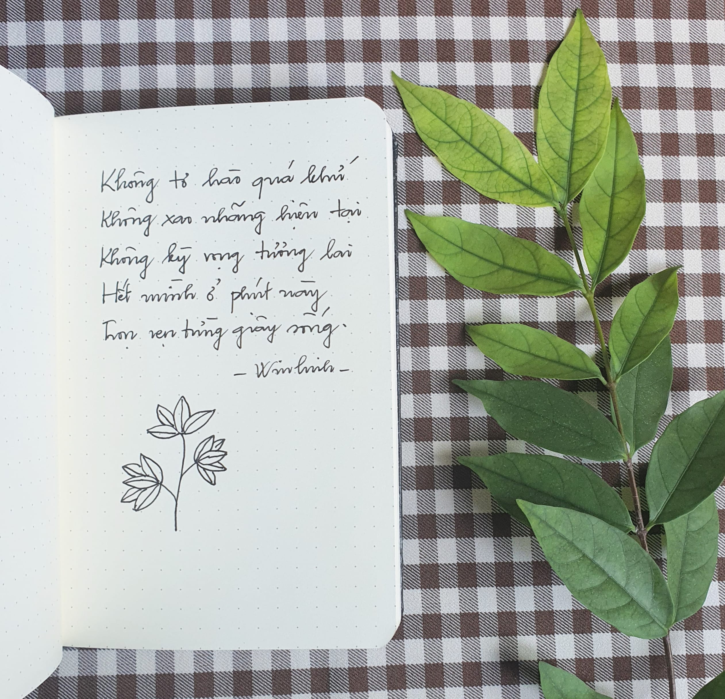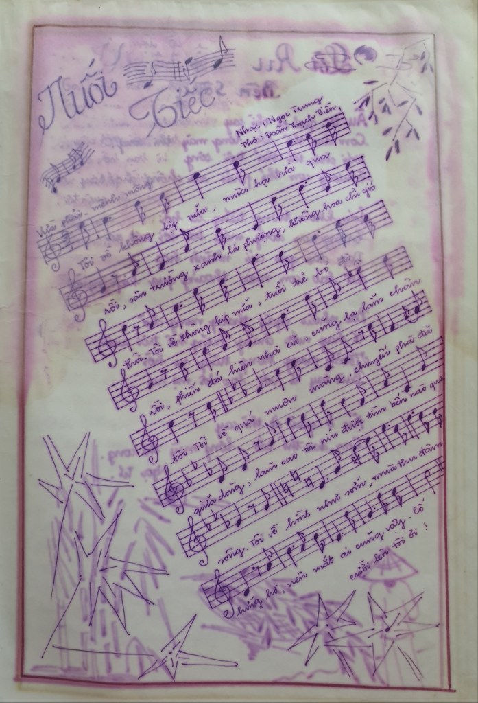 Thấy chữ mình của cách đây hơn 20 năm về trước. Chính xác là 22 năm trước. Một bài nhạc tôi chép vào quyển báo handmade mà chúng tôi làm cho lớp. Dòng mực tím đã nhòe. Mọi thứ không còn nguyên vẹn nữa, kể cả những tình bạn từng được cho là thân. Nhưng cũng có bao điều đẹp đẽ ngày ấy còn đọng lại trong ký ức và trong cả màu mực tím ngày xưa.