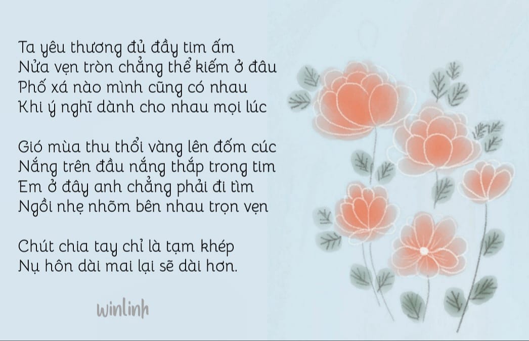 Một buổi sáng mùa thu bình yên gió hiu hiu thổi. Trời đẹp, thích lắm, không biết dùng từ ngữ nào để tả nữa. Và tôi thấy càng thêm hạnh phúc khi được mẹ sinh ra trong tháng 10, ngày đầu tiên của tháng 10, khi thu vào độ chín.