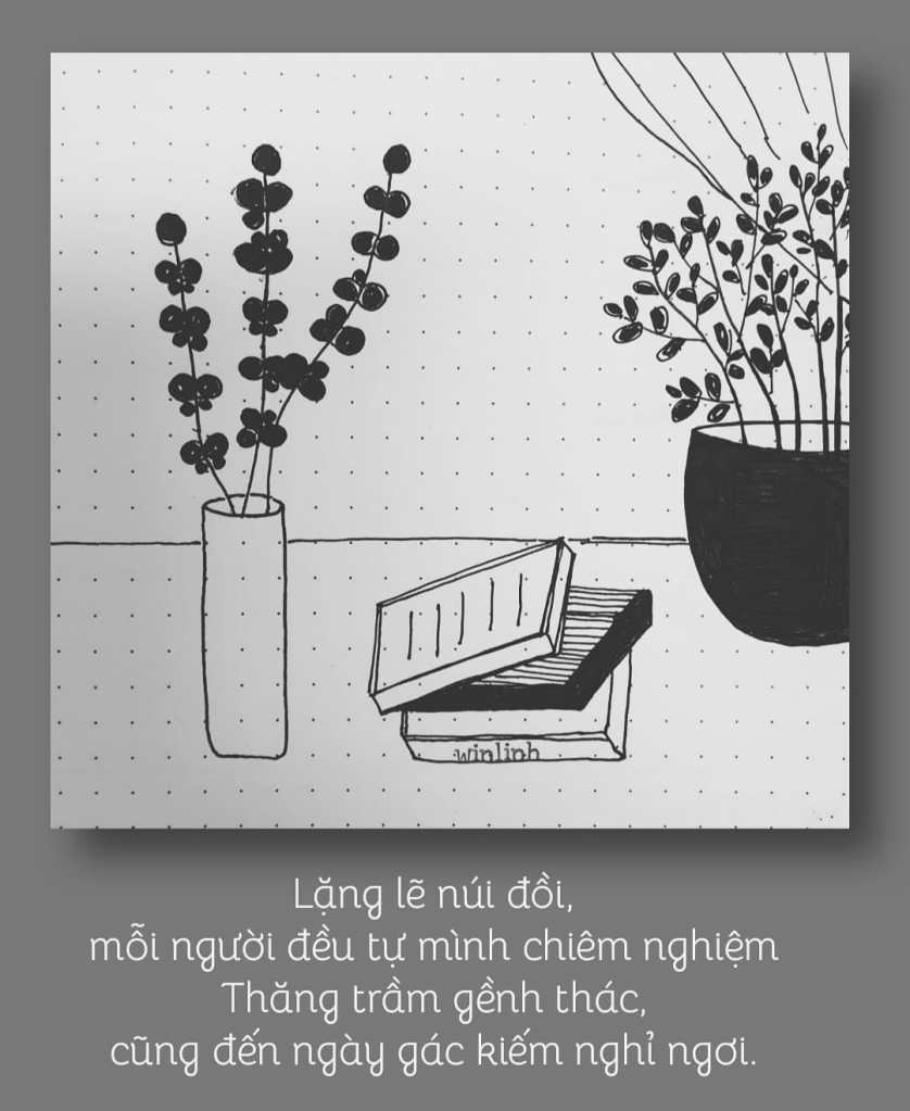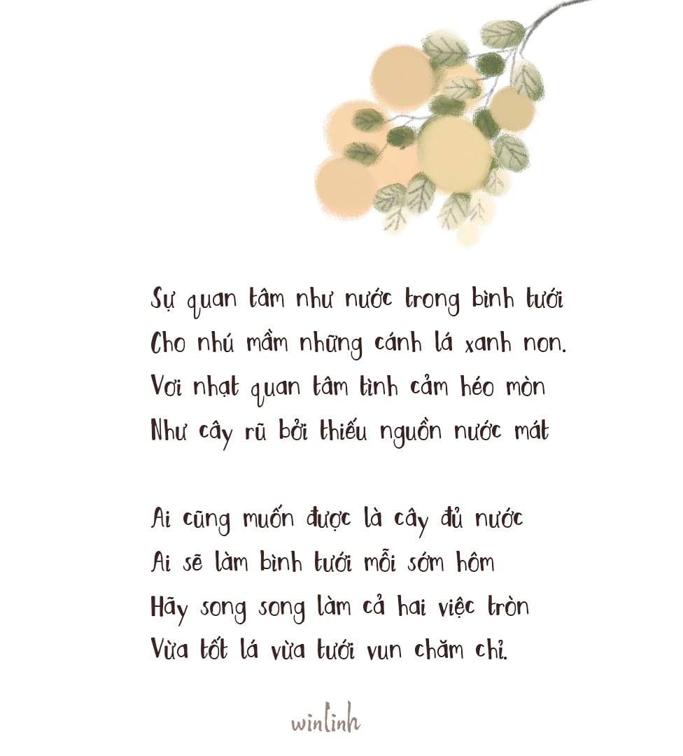 Chưa kể tôi còn hay ngắm những cây cọ ngay sau cửa sổ tôi ngồi làm việc. Nhìn ra đó là khoảng không bao la, người xe đi ngược xuôi, những cành lá cọ xao động dưới nắng vàng. Tôi thấy mình may mắn quá khi được làm việc giữa không gian tràn ngập ánh sáng và gió trời như thế.