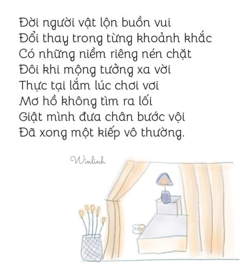 Tôi đã ấp ủ làm một trang instagram chuyên lưu tranh vẽ của mình từ lâu. Nhưng vừa xong tôi mới lập được. Lập thì dễ, nhưng tại tôi cứ băn khoăn có nên không khi tôi đã có một trang winlinh.art (giờ là winlinh.poem) chuyên đăng tranh thơ, tranh vẽ và cả các feedback liên quan các sáng tác của mình. Rồi cuối cùng tôi cũng quyết tâm phải làm một trang lưu tranh, vì cảm thấy cần cho chúng một đời sống riêng, không nương vào thơ, không chỉ là mang ý nghĩa minh họa. Vậy là trang instagram winlinh.draw ra đời. Tạm thời tôi chưa biết đặt tên gì cho nó hay hơn, nên cứ để thế đã.