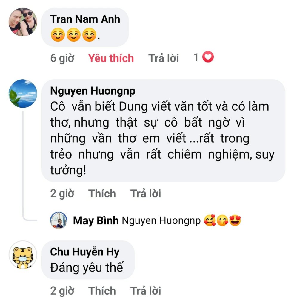 Em siêu gì đâu, kiểu tự nhiên đọc nhiều xong thành thích viết vì gặp đúng chỗ đó chị ạ :)))) Chứ fb em mà viết xong em toàn để private thoai…