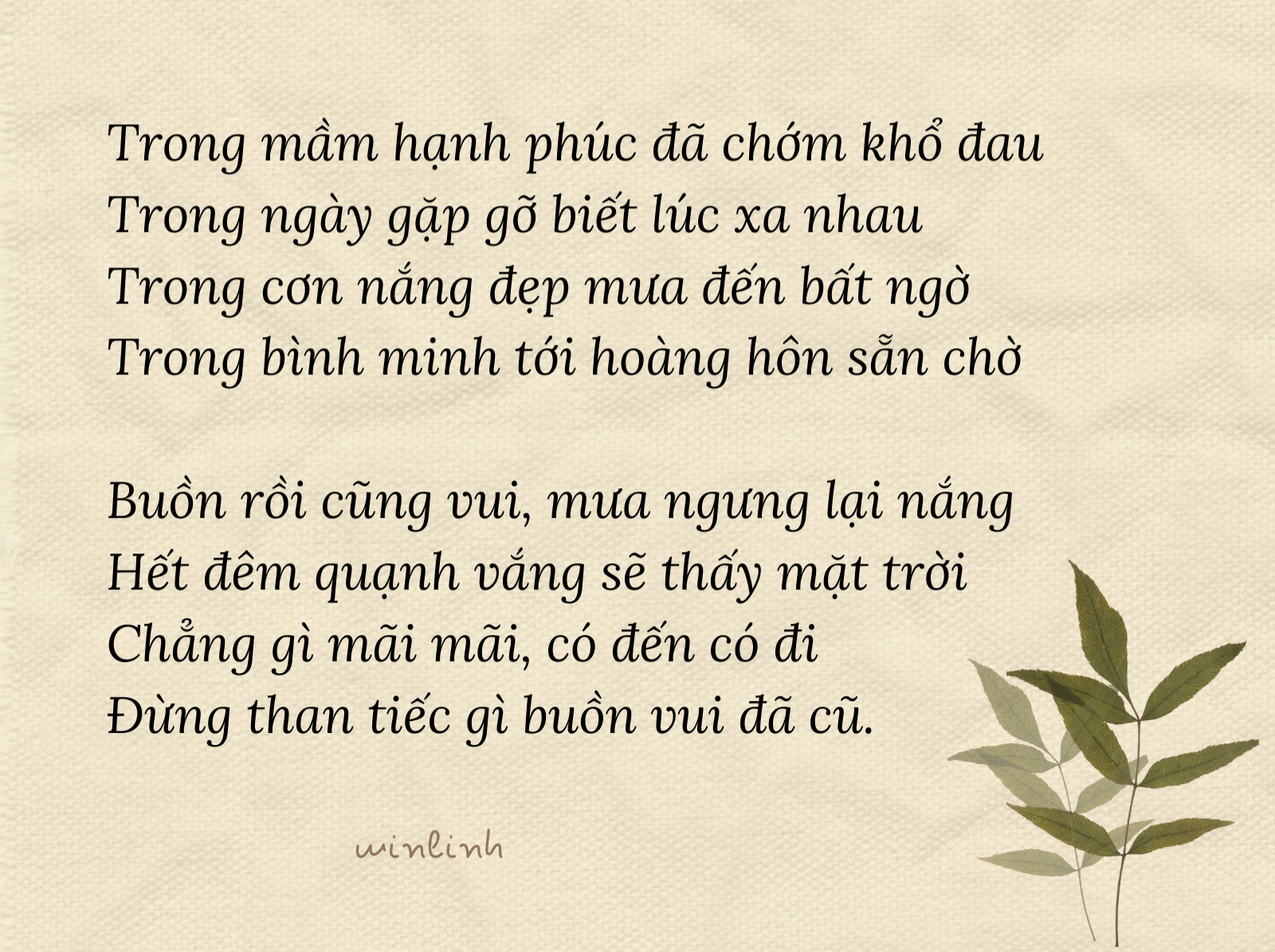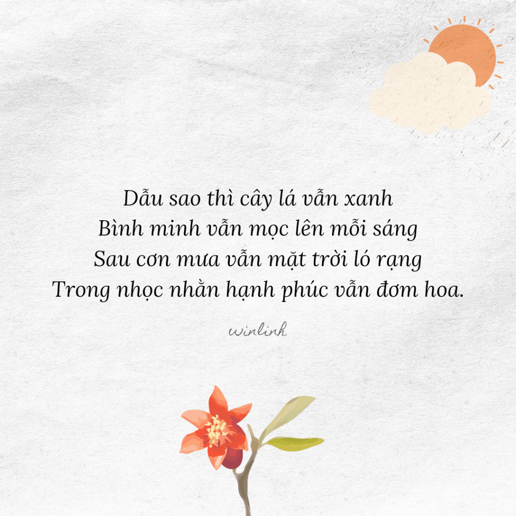 Ai bảo trời đẹp làm chi, để Winlinh hôm nay bỗng trở nên nói nhiều. Chúc các bạn luôn mạnh khỏe và an ổn trong tâm hồn! Cảm ơn các bạn đã luôn dành cho Winlinh một sự chia sẻ và động viên ấm áp! ❤
