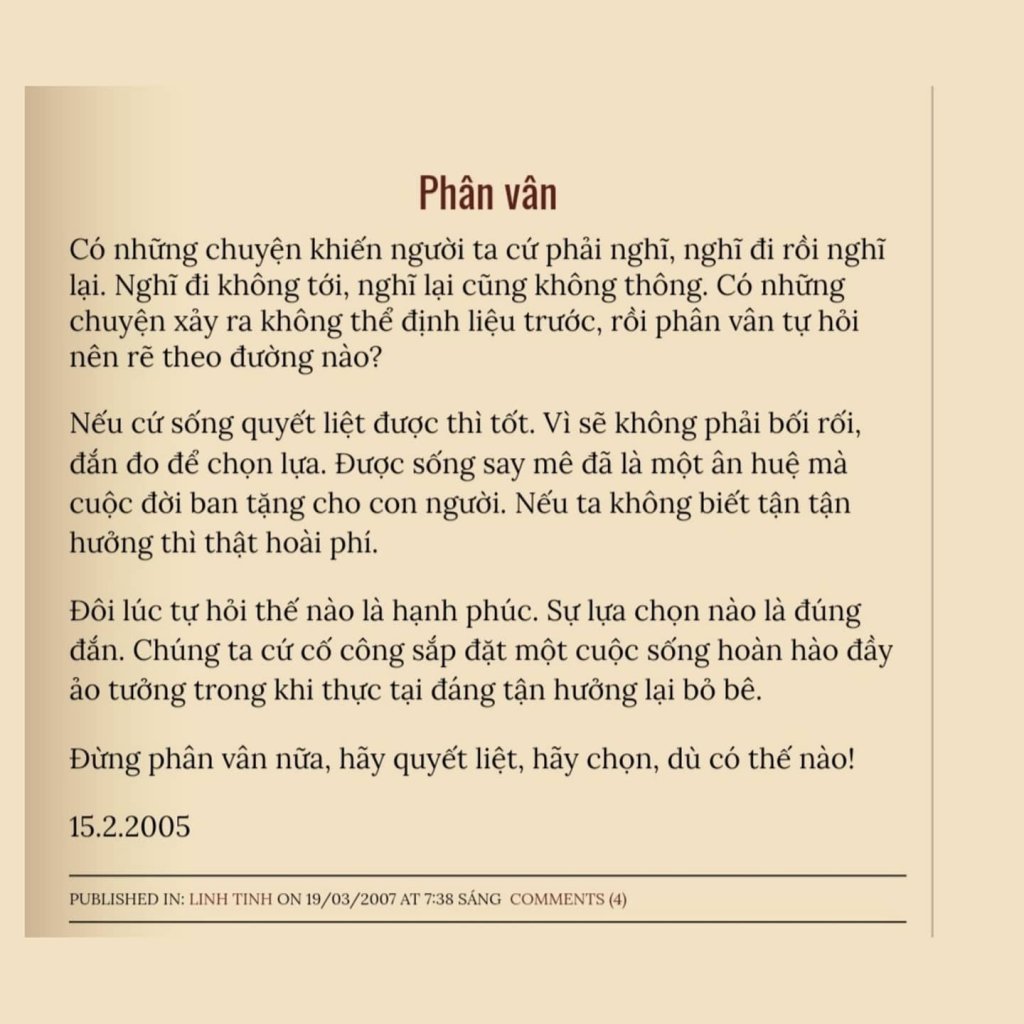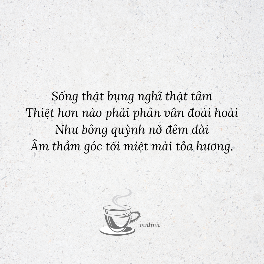 Bỗng có chút tâm tư, muốn chia sẻ với những ai đã đồng hành cùng trang Winlinh một thời gian đủ để cảm nhận được một góc nhìn, một thái độ của Winhlinh với cuộc sống. Những chia sẻ không đầu cuối, những ý nghĩ chợt đến, ai muốn đọc, ai không, đều rất trân trọng!