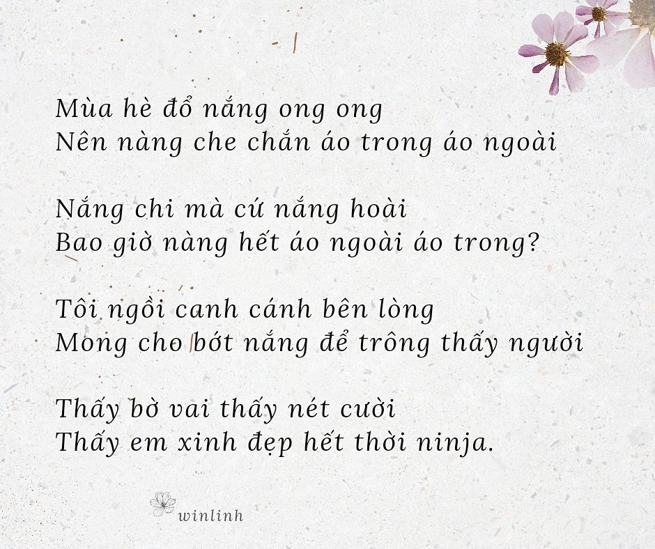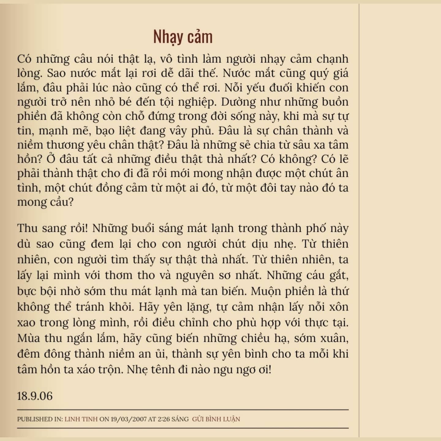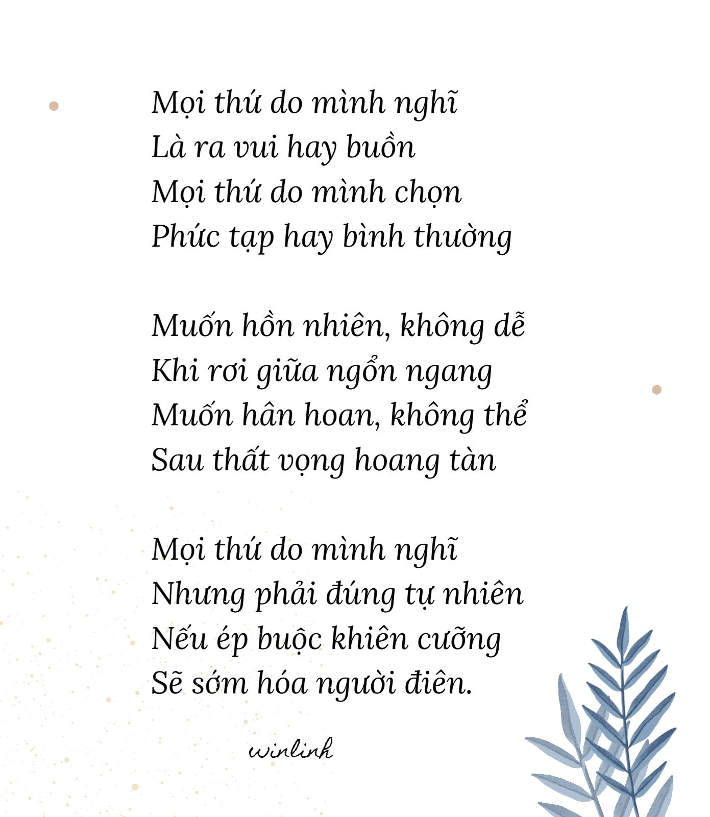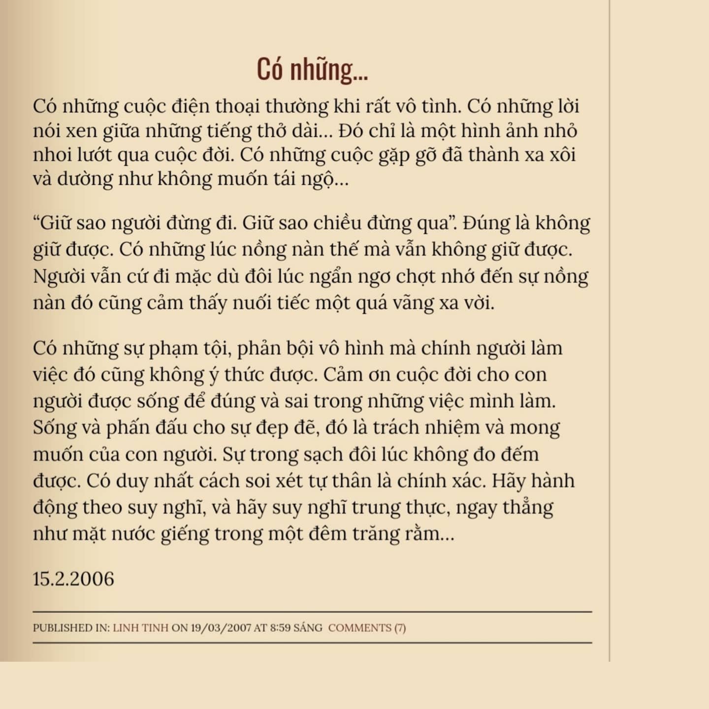 Đây là bài tôi viết trên page Winlinh từ 5/11/2020, nay nhân đọc được một bài có nội dung tương tự của một bạn trong blog, tôi chợt nhớ ra nên tìm bài cũ up lên đây để lưu lại. Sau thời điểm viết bài này, đôi khi tôi vẫn gặp những trường hợp bê thơ mình đi mà cố tình không để nguồn. Nhưng dần dần, tôi buộc phải học cách quen với điều đó và tự nhủ, chữ của mình vẫn mãi là của mình. Ai đó mượn dùng mà cố tình biến thành của họ thì nó vẫn luôn chỉ là cái vay mượn, ăn cắp mà thôi.
