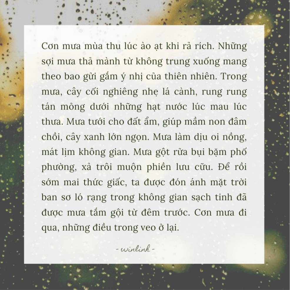 Mấy ngày nay Hà Nội mưa hoài. Tôi đang ngồi đọc sách trong thư viện và nghe tiếng mưa rơi đều bên ngoài ô cửa kính.
