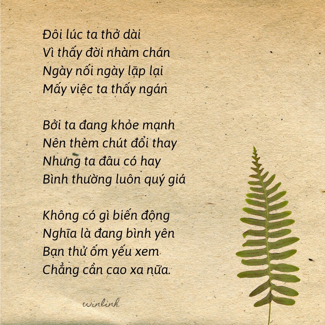 Thật ra blog với mình rất riêng tư. Nên mình muốn viết nhiều điều li ti ở đây. Tuy nhiên đợt vừa rồi mình mải sáng tác, tập trung cho fanpage Winlinh nên blog bị lơ là. Chủ yếu mình đăng sáng tác chứ ít viết tâm sự được. Hy vọng thời gian sau này mình sẽ có thêm thời gian để duy trì căn nhà này ấm áp với đúng nghĩa của nó.