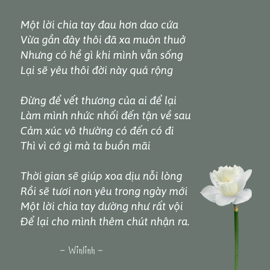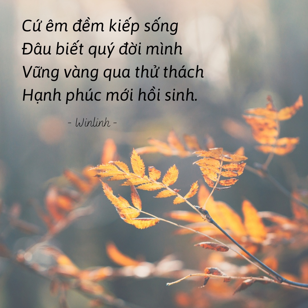 Tạm biệt/đón chào tất cả những niềm vui/nỗi buồn của năm cũ/năm mới. Một năm khởi đầu cho cuộc sống rất khác của tôi. Nhưng tôi thấy bình yên sau sự dịch chuyển ấy. Là bởi vì tâm tôi đã tự định vị ở một nơi mà nó muốn, nên dẫu xê dịch chỗ nào, mọi sự vẫn bình thường thế thôi. Và tôi sẽ tiếp tục học những bài học cuộc đời, trau rèn mình để trong sáng, giản dị, điềm đạm hơn trước mọi diễn biến của đời sống. Vì rút cục tôi chẳng mang theo được gì, ngoài bước chân và hơi thở, nên tôi đâu cần phải cố hết sức để bon chen. Tôi chỉ cần chăm chỉ làm việc của chính mình, là đã đủ ăn và hạnh phúc.