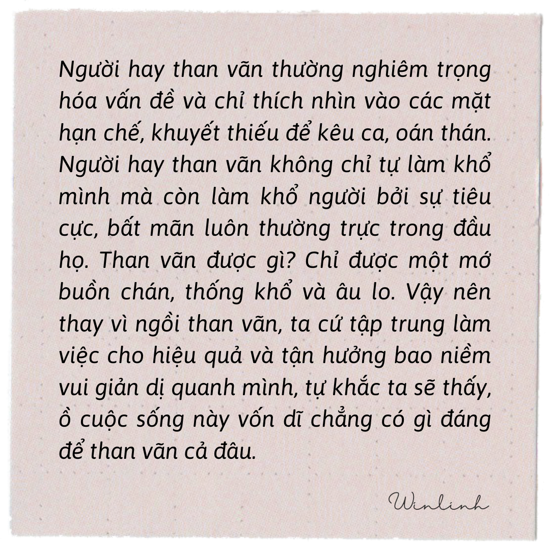 Có bạn hỏi “làm sao để lúc nào cũng có thể vui vẻ như chị?”, mình trả lời “đâu phải lúc nào chị cũng vui vẻ được đâu, buồn nhiều chứ, người lúc nào cũng vui vẻ sao mà viết được”…