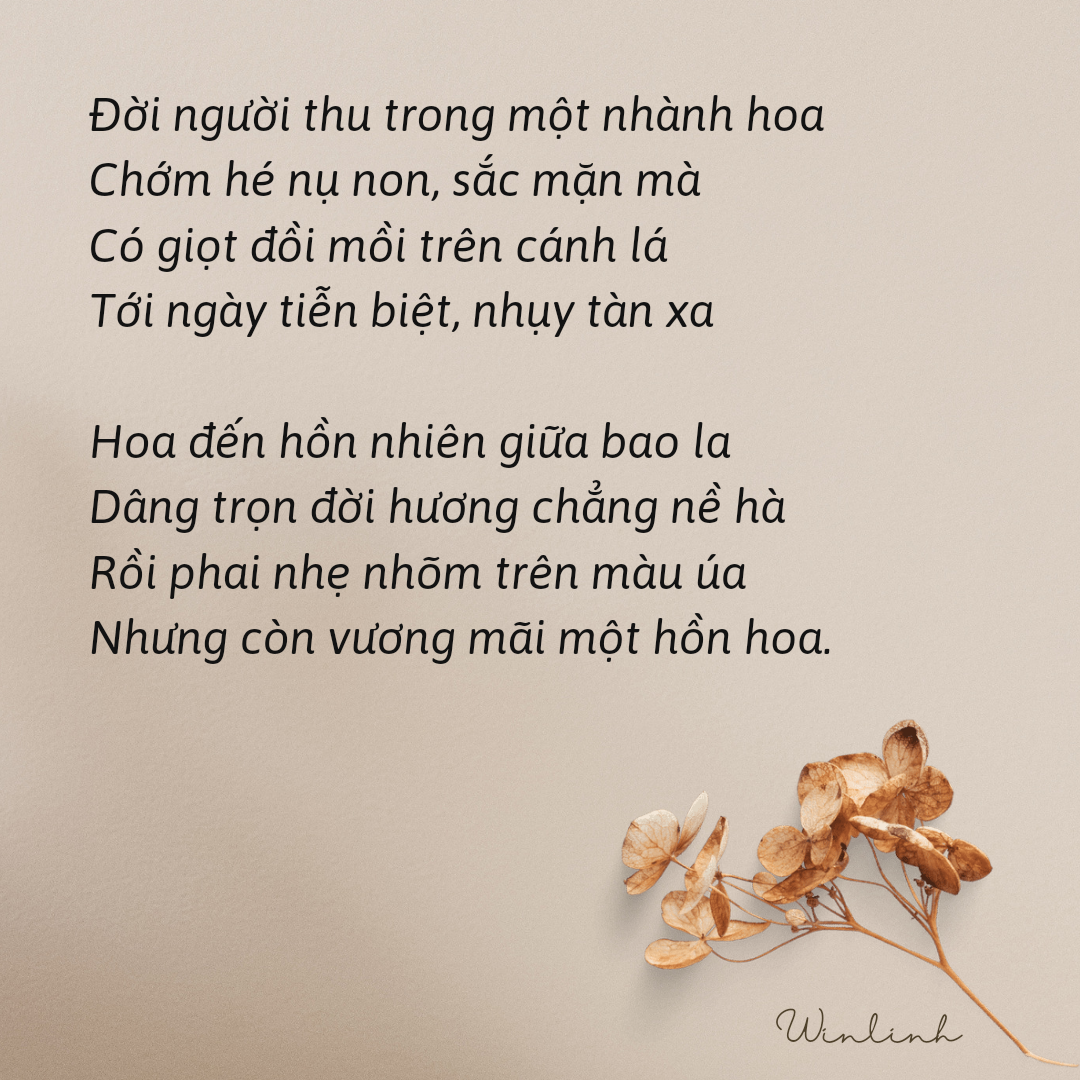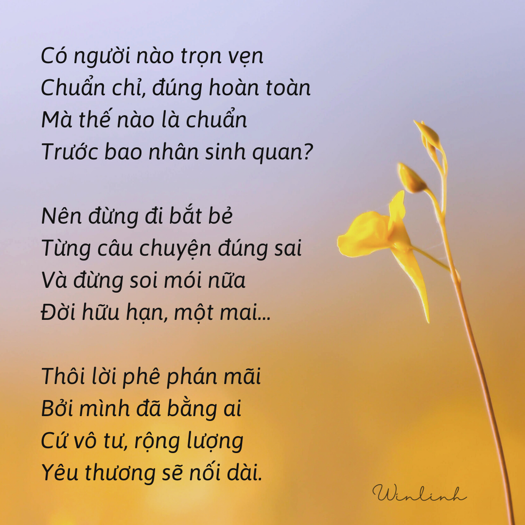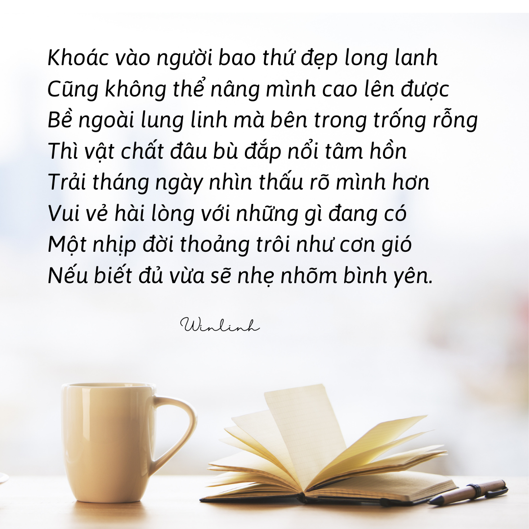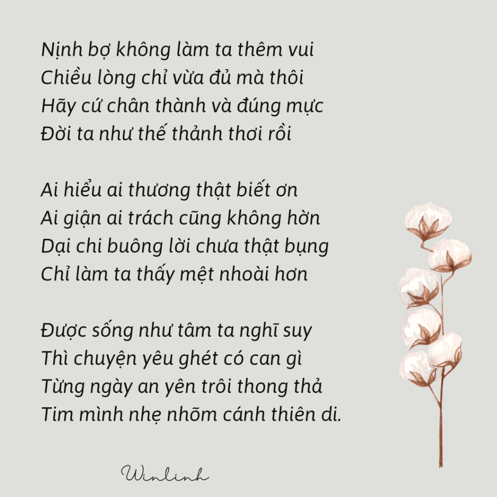 Người đàn bà qua trải nghiệm gian nan Biết buông bớt cho thảnh thơi cuộc sống An nhiên bước giữa nhân sinh dài rộng Chuyện hơn thua giờ vô nghĩa mất rồi