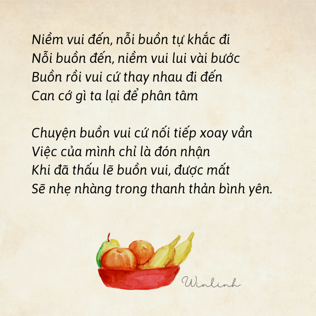 Khi chưa biết buồn là gì, ta dễ dàng trở nên tự mãn và coi nhẹ mọi thứ mình đang có. Bởi vậy, nếu lỡ lúc nào buồn bỗng đến tìm, đừng vội xua đuổi nó. Hãy coi đó là cơ hội để mình được lắng đọng, điềm đạm, sâu sắc và trưởng thành hơn lên.
