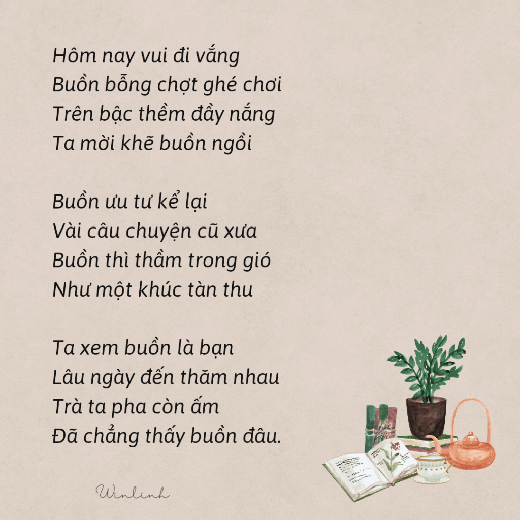 Hôm nay tự dưng ngẫu hứng gom lại mấy bài mình từng viết về nỗi buồn, lưu vào một post. Chưa gom hết đâu nhưng cứ để đây trước để biết mình từng nghĩ và viết về nỗi buồn như thế nào.