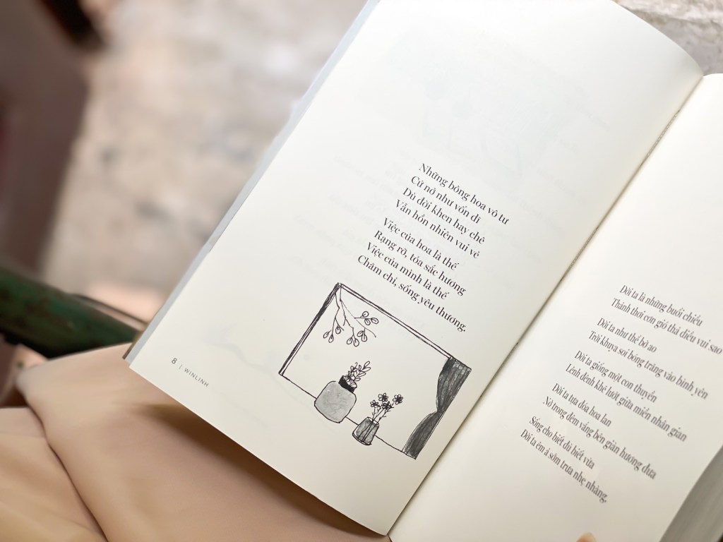 🌿 Sách do NXB Thế giới và Bluebooks (AZ) ấn hành, dày 256 trang, có hình minh họa của tác giả ở từng trang, khổ sách 12,5×20,5cm. Đặc biệt còn có thêm món quà nhỏ kèm theo là 1 bookmark và 3 postcard in giấy bồi cứng với thơ và tranh do chính Winlinh viết và vẽ.