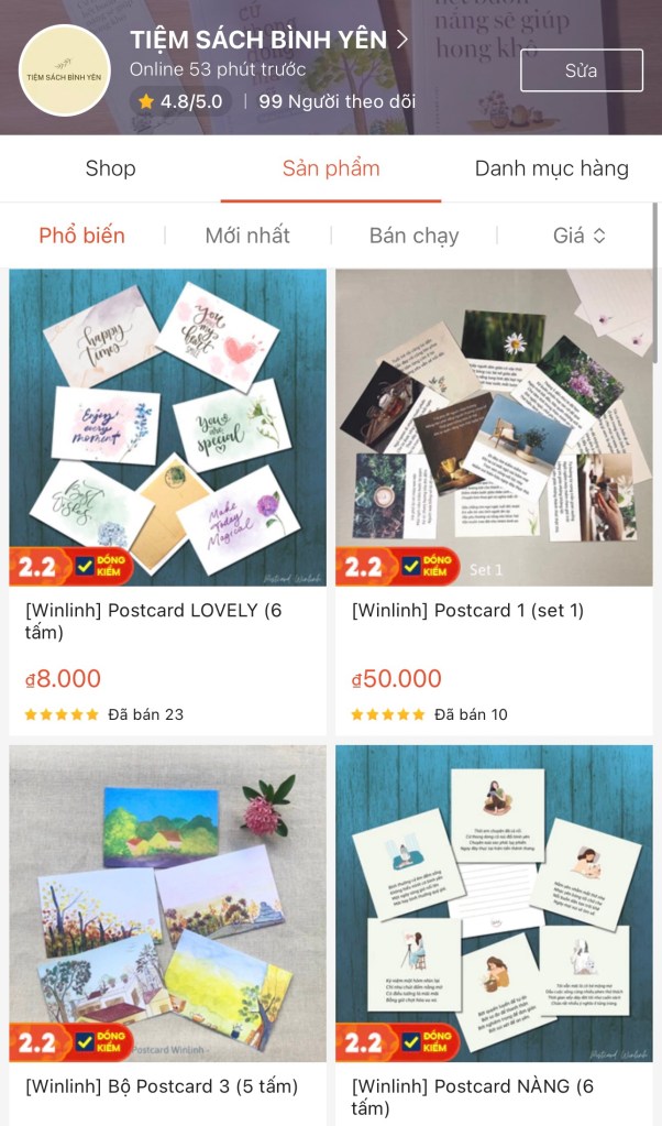 11. Mở kênh Shoppe “Tiệm sách Bình yên”.