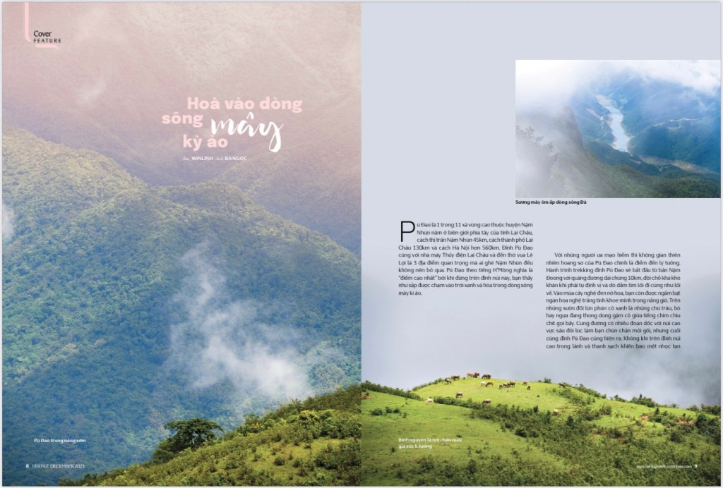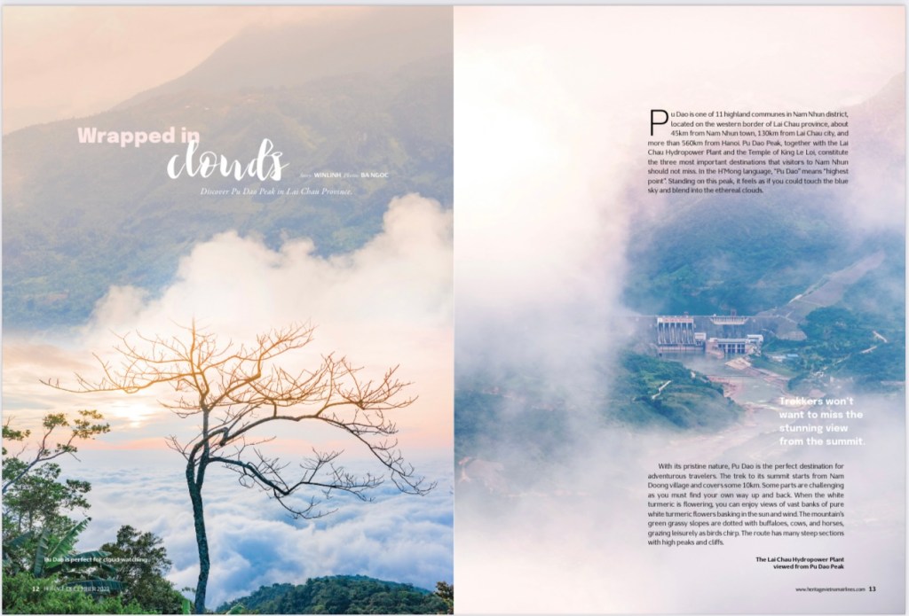 Muốn đến được Pú Đao, phải đi hết chừng 24km qua cầu Lai Hà, cây cầu bắc ngang một phụ lưu của con sông Đà,. Pú Đao theo tiếng H’Mông nghĩa là “điểm cao nhất” bởi khi đứng trên đỉnh núi này, bạn thấy như sắp được chạm vào trời xanh và hòa trong dòng sông mây kì ảo.