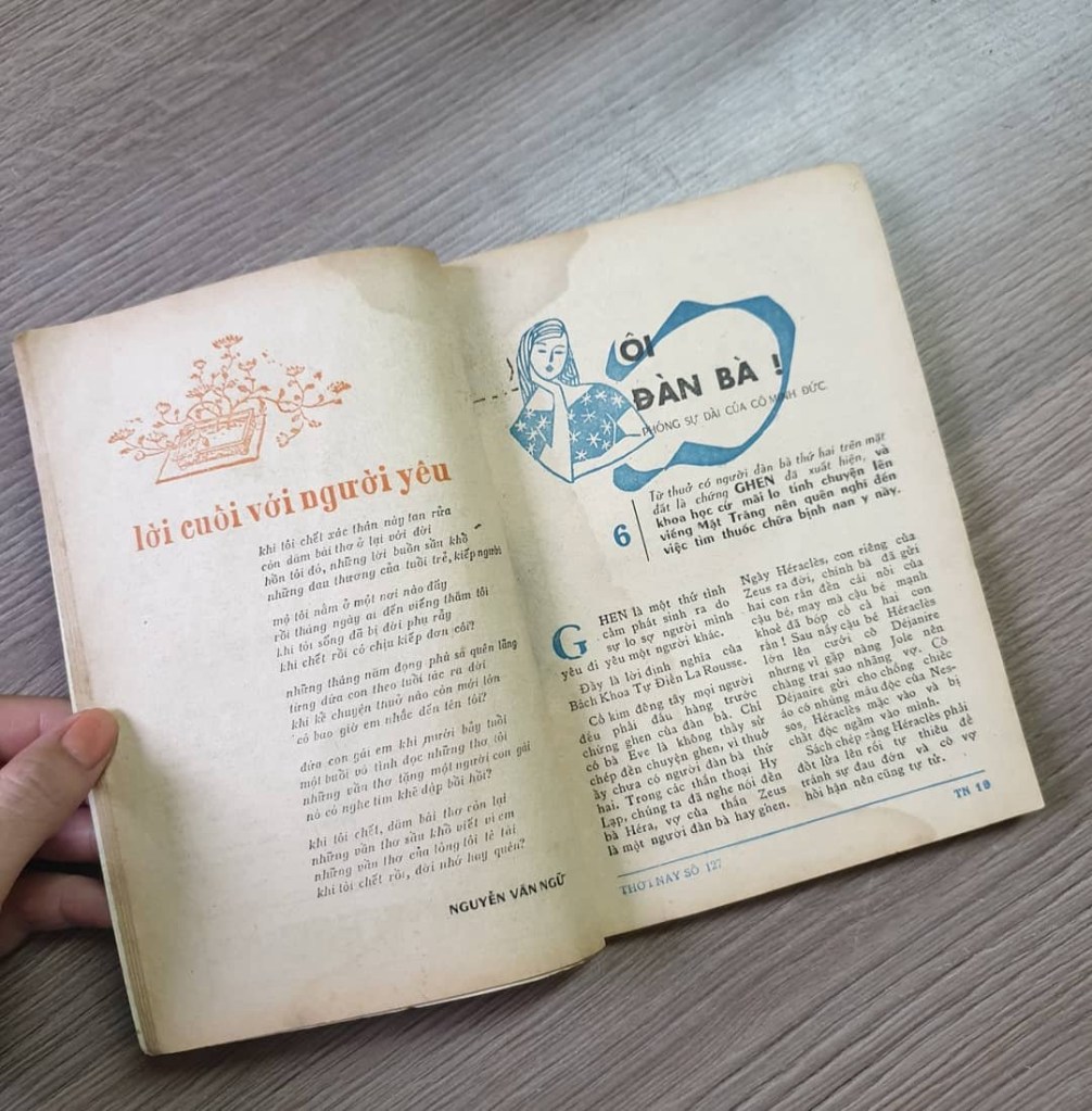 Trên giá sách của tôi có cuốn Tạp chí Thời nay, một tạp chí xưa cũ minh chứng cho hoạt động báo chí nước ta trong quá khứ. Thời gian qua đi, những ấn phẩm còn lại. Tờ Thời nay mà tôi sở hữu xuất bản từ năm 1965 ở Sài Gòn với giá 10đ. Có thể chỉ là những mảnh giấy cũ với người khác, nhưng lại là thứ đáng quý đối với tôi. Bởi đây không chỉ là giấy, đây là chứng tích thời gian, nơi lưu giữ một nhịp thở thời đại. Đôi khi tôi cũng thích được sống thử một khoảnh khắc nào đó mà tôi không được chứng kiến trực tiếp, thì đây chính là cơ hội cho tôi được tận hưởng điều đó.