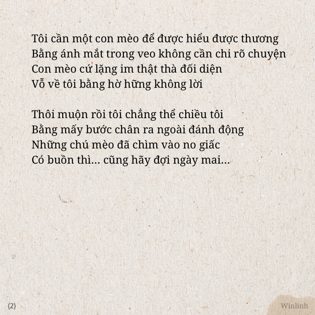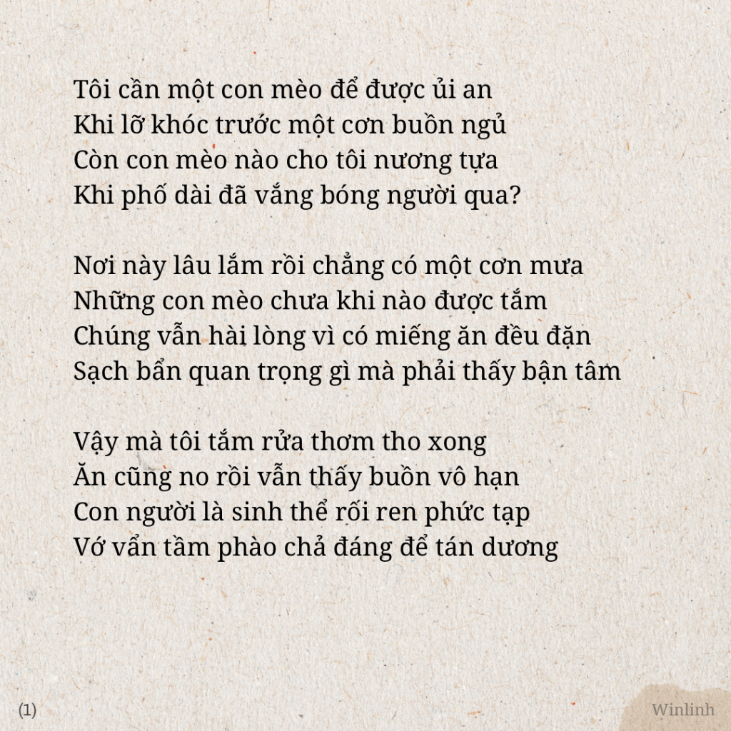 Vào những lúc khủng hoảng nhất, ai là người nâng đỡ cho ta? Không ai cả, chỉ có chính ta thôi! Những con chữ có thể làm điểm tựa cho ta. Chúng hiển lành bao dung im lặng cho ta vịn vào và đứng dậy. Nhìn ngược lại, những câu chữ của ta chính là nội tâm ta. Chúng an ủi ta, ôm ấp ta, thấu hiểu ta, vỗ về ta… vô điều kiện, không giới hạn. Chỉ có ta đủ sức yêu thương chính mình dài lâu trọn vẹn. Còn lại tất cả mọi mối quan hệ khác đều cần điều kiện, đều cần phản hồi. Dẫu là yêu thương lớn lao đến đâu, cũng sẽ một ngày mỏi mệt nếu ta không thể đắp bồi và đáp trả. Càng thấu rõ tình yêu của mình với chính mình là thứ tình yêu vĩnh cửu và duy nhất.