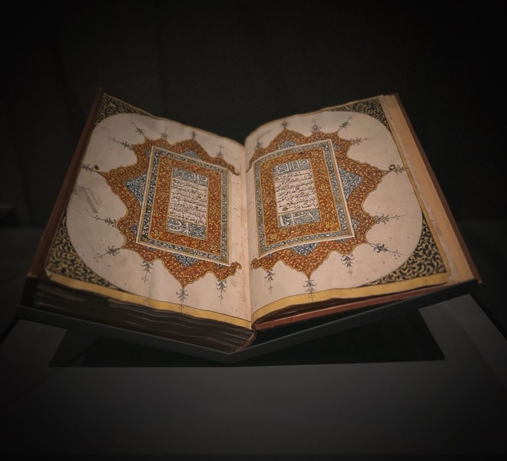 2. Bản thảo kinh Qur’an (Indonesia, Java) ra đời thế kỷ 13 AH (thế kỷ 19 CN) đang trưng bày tại Bảo tàng Nghệ thuật Hồi giáo Qatar. Sách in bằng mực và màu nước đục trên giấy châu Âu. Do độ ẩm cao trong khu vực, chỉ còn lại một số ít bản thảo kinh Qur’an từ Đông Nam Á, có niên đại trước thế kỷ 13 AH (thế kỷ 19 CN). Các bản sao kinh Qur’an được tạo ra ở Java đặc biệt đa dạng về phong cách trang trí theo vùng, mỗi bản phát triển từ các trường phái nghệ thuật khác nhau. Các bản thảo chủ yếu được in từ giấy châu Âu nhập khẩu hoặc giấy Dluwang (được sản xuất tại địa phương từ vỏ cây dâu tằm đập dập).