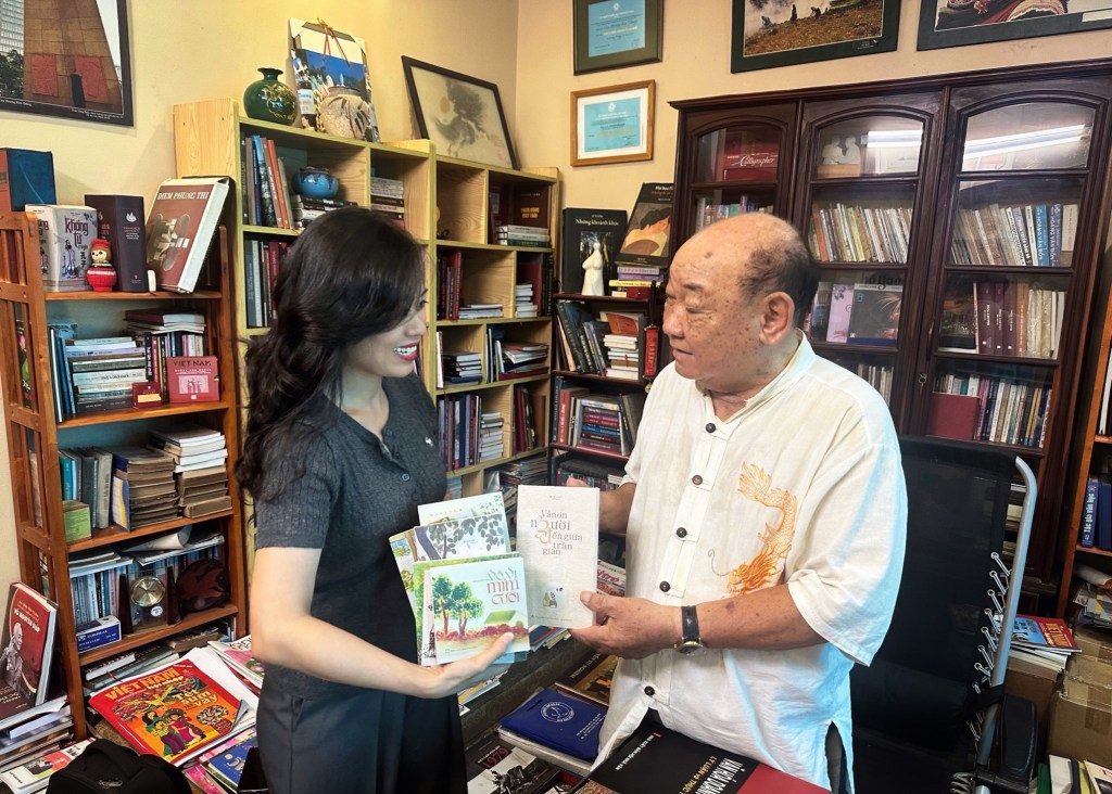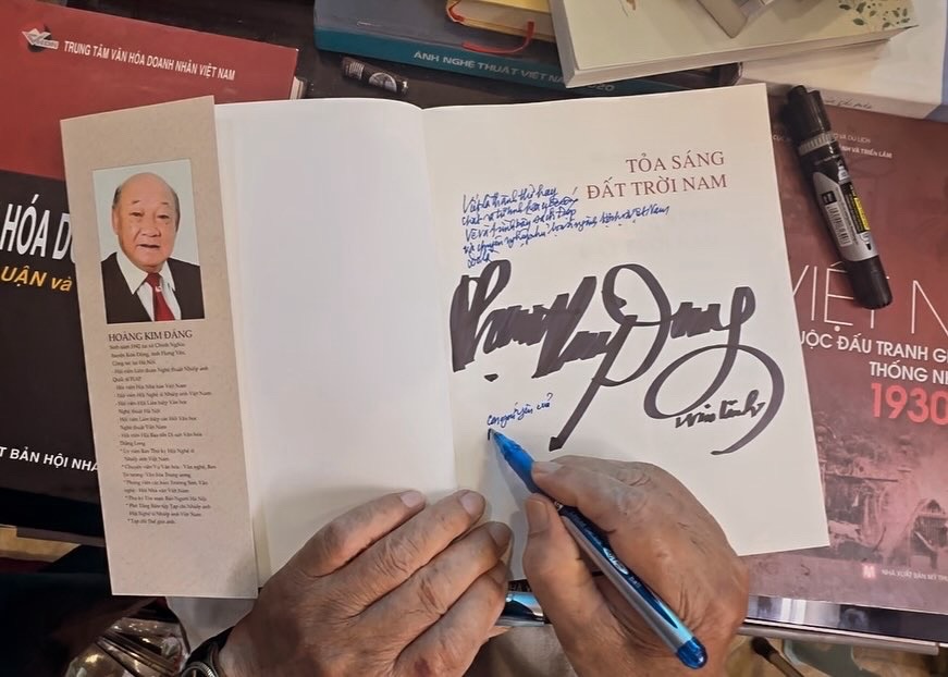 Hôm nay mình vinh dự được NSNA, Nhà báo Hoàng Kim Đáng mời tới nhà chơi để ông trao tặng cho cuốn sách “Tỏa sáng đất trời Nam”, đồng thời mời mình viết lời cảm nhận cho cuốn sách này, sẽ in trong tập tái bản có bổ sung thời gian tới. Ông là tác giả của nhiều bức ảnh nổi tiếng chụp các nhân vật lịch sử, văn hóa như Đại tướng Võ Nguyên Giáp, nhà văn Nguyễn Tuân… cùng nhiều tác phẩm báo chí và nhiều cuốn sách giá trị, mang tầm ảnh hưởng (bạn có thể tìm hiểu nhiều hơn về ông trên Internet). Mình cũng đã kính tặng ông những cuốn sách Winlinh và ông nói sẽ đọc hết chúng như đã đọc trọn vẹn cuốn “Chuyện đã cũ cứ thong dong mà cũ” mình tặng ông năm 2021. Thật cảm động vì được ông ghi nhận và cho những lời chia sẻ động viên, khích lệ. Một tâm hồn, một trí tuệ đáng nể với lối ứng xử khiêm nhường, thật đáng quý biết bao.
