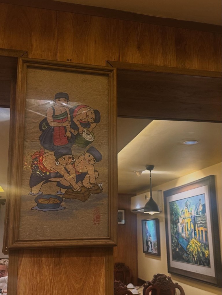 Một chút tranh trong quán lẩu riêu cua số 8 Nguyễn Biểu. Giữa nơi ăn uống ồn ào, ta lặng lẽ ngắm tranh và chìm sâu vào nét vẽ với sắc màu cùng đôi ba dòng suy tưởng.
