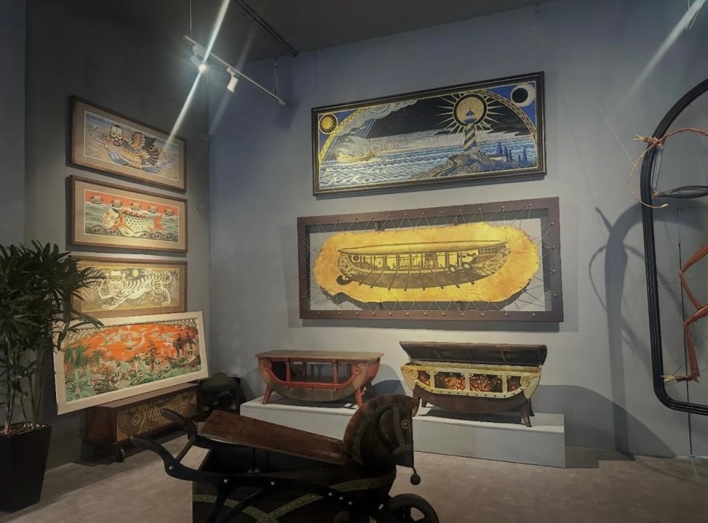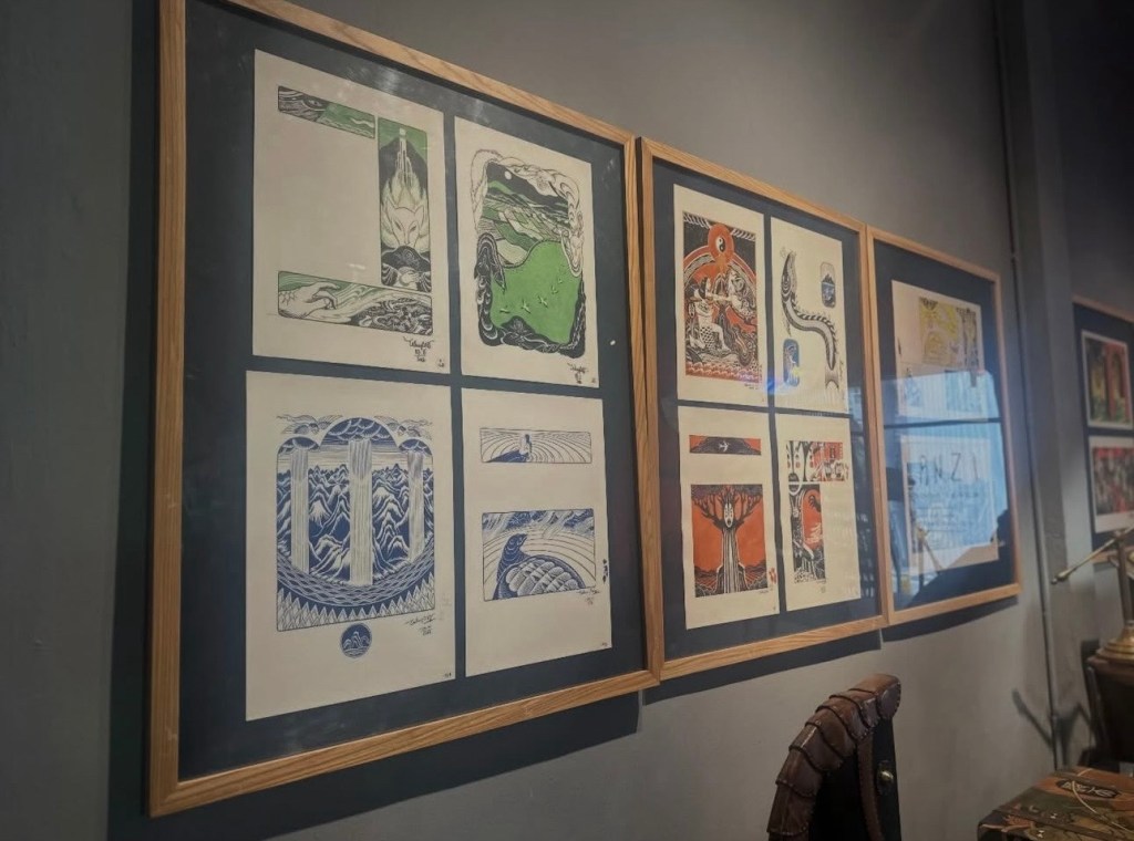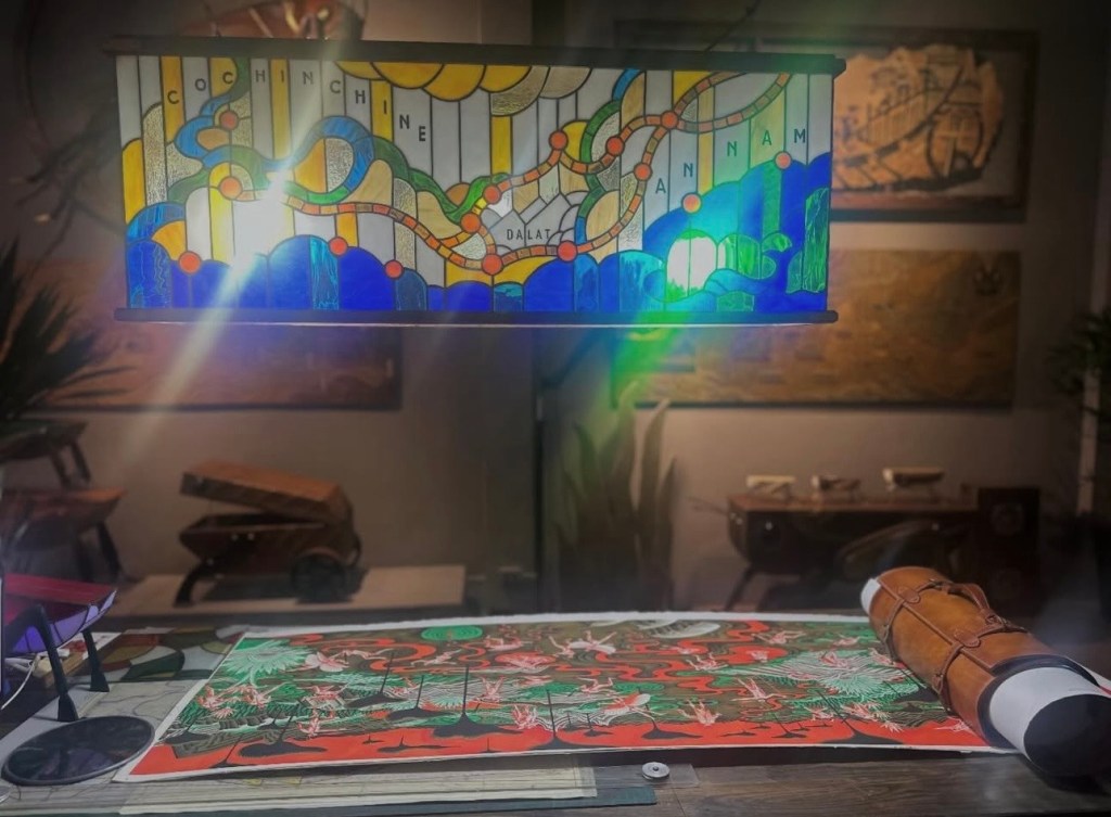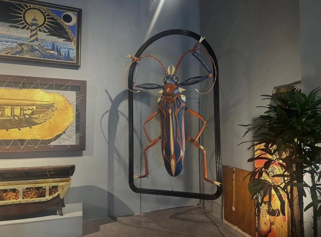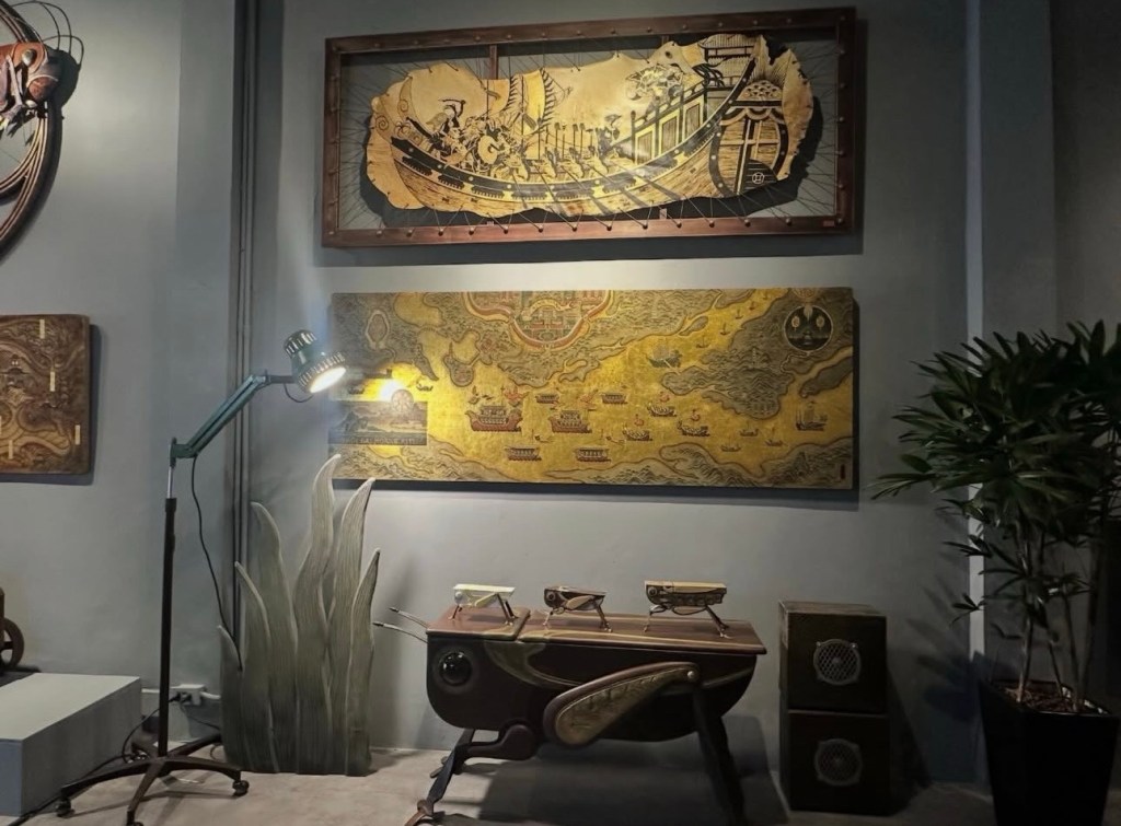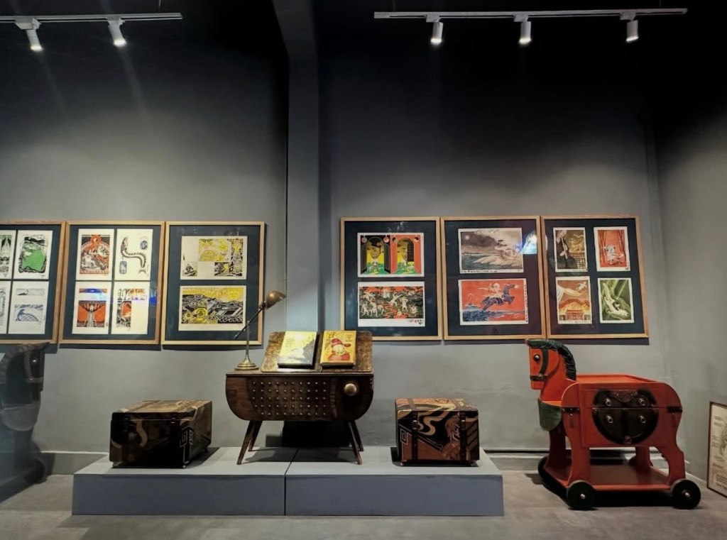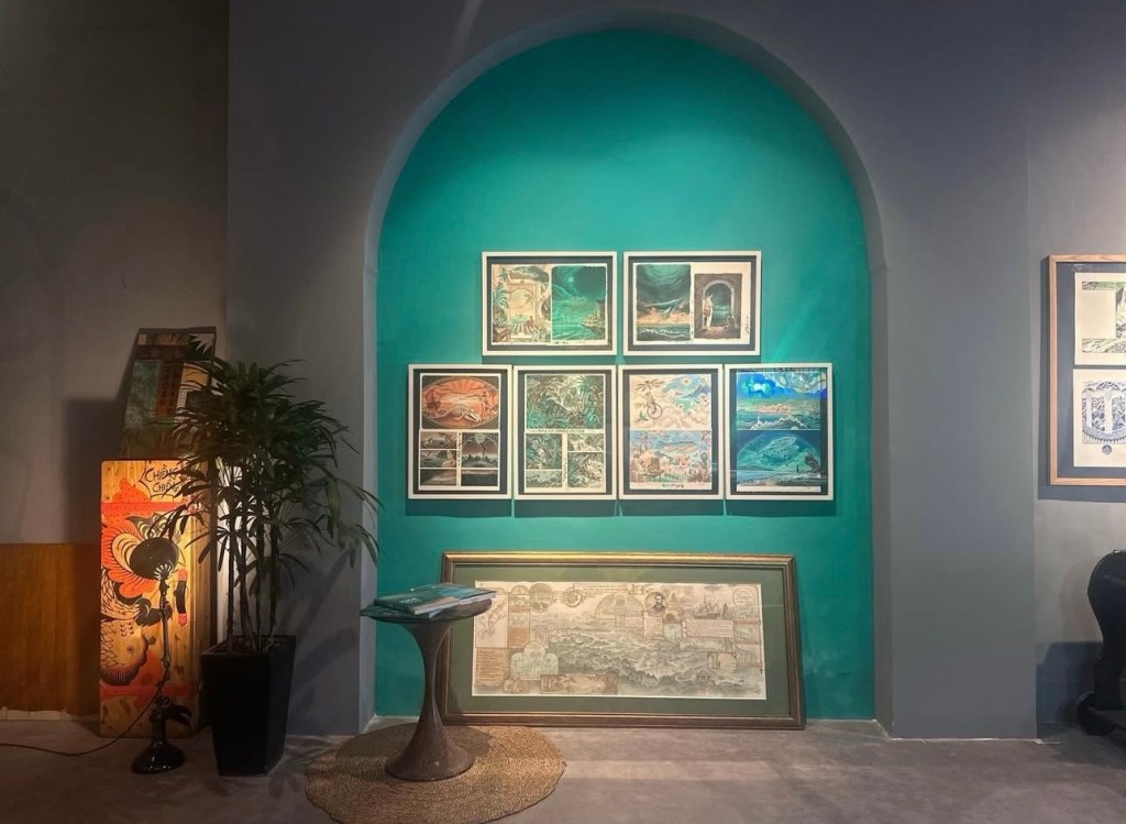 Ngày cuối năm (31/12/25) đi xem triển lãm mà em Dương mách. Và mình copy lại lời em nhắn để miêu tả luôn: “Tạ Huy Long – Họa sĩ vẽ minh họa cho các sách Kim Đồng như Dế mèn phiêu lưu ký, Lĩnh nam chích quái, Nam hải dị nhân. Anh ấy đang có triển lãm ở Manzi, vé free. C rảnh thì qua xem, đẹp phết, em đang ở đấy!”… “Phòng trưng bày ở số 2 ngõ Hàng Bún. Chị để xe ở quán cafe chỗ Phan Huy Ích. Mở từ 11h- 19h nhé chị!”.