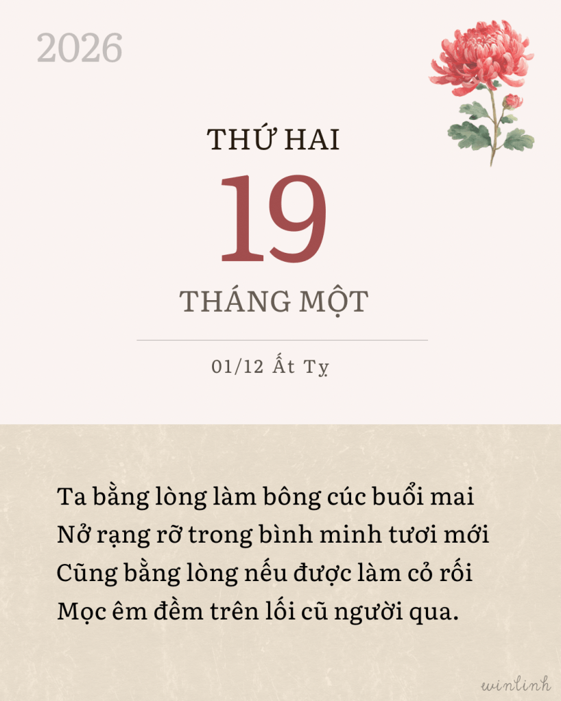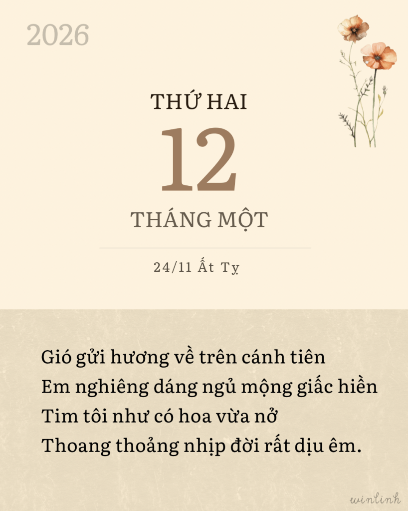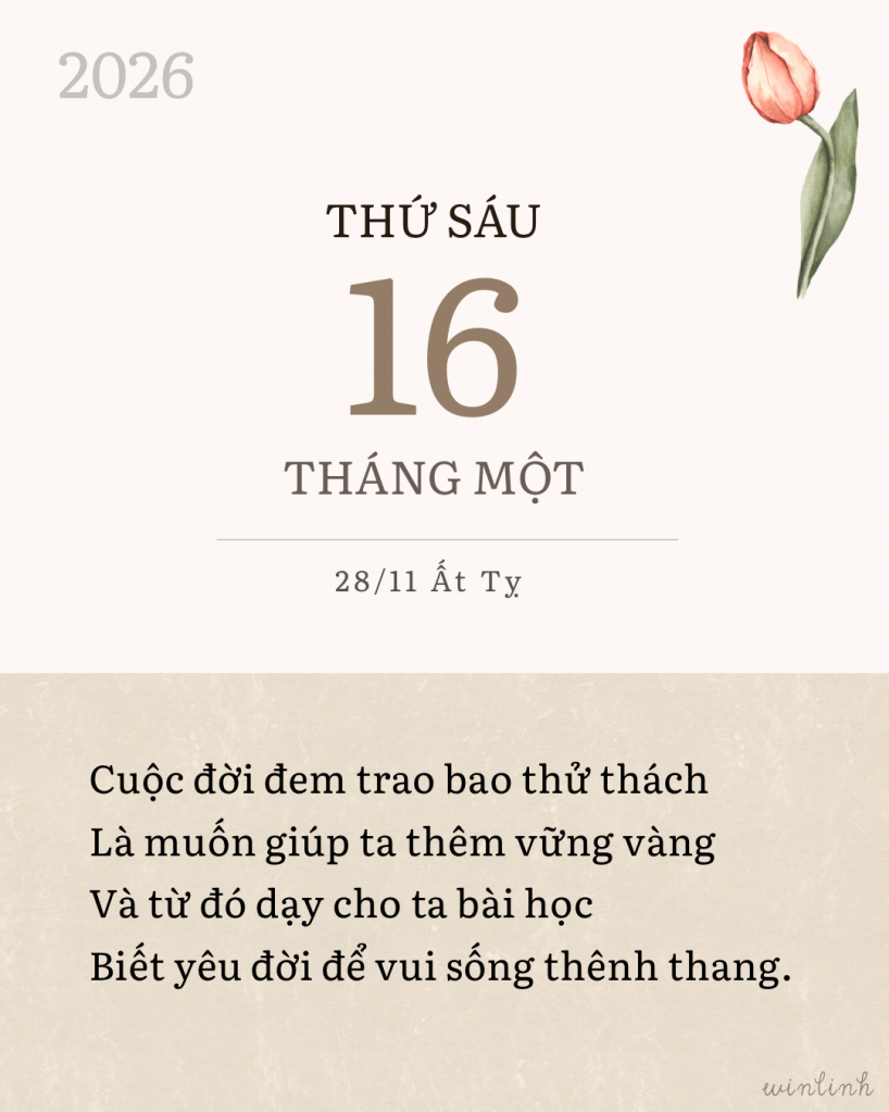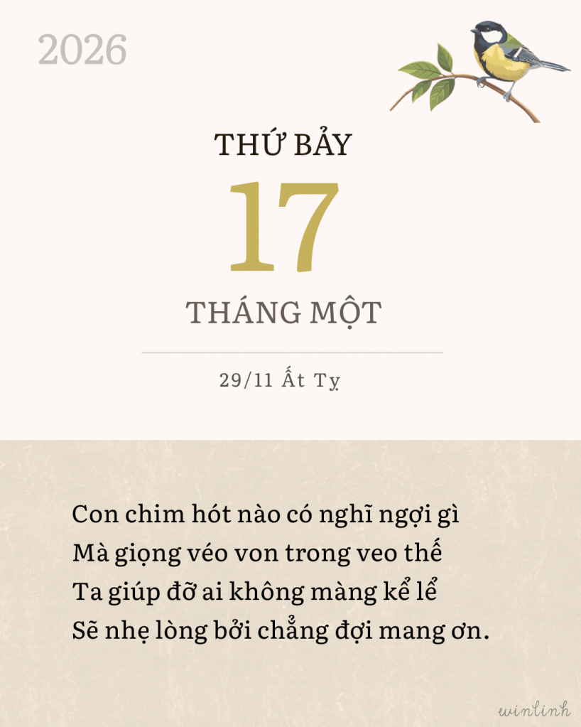 Cảm ơn những dòng lịch thơ của chị. Tháng này có sinh nhật em, ngày 17. Em xem những dòng lịch thơ ngày 17 như một lời nhắn nhủ dịu dàng đến linh hồn mình.