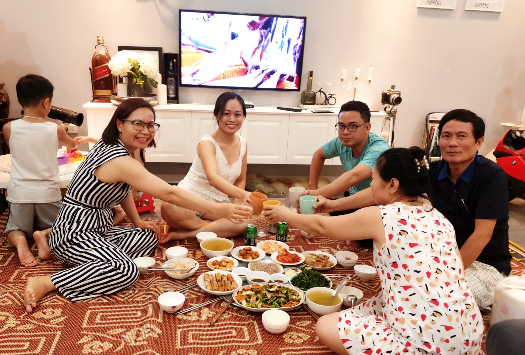 Tối. Giao lưu. Mình cũng hòa vào mọi người và hát.