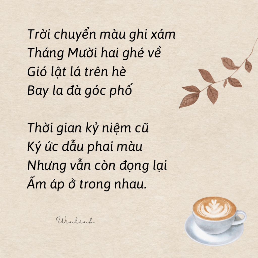 Khi vẫn còn sống ổn dưới trời cao Hãy trân trọng những gì ta đang có Hãy thương mến dẫu chỉ là ngọn gió Thổi khẽ khàng qua ô cửa mùa thu.