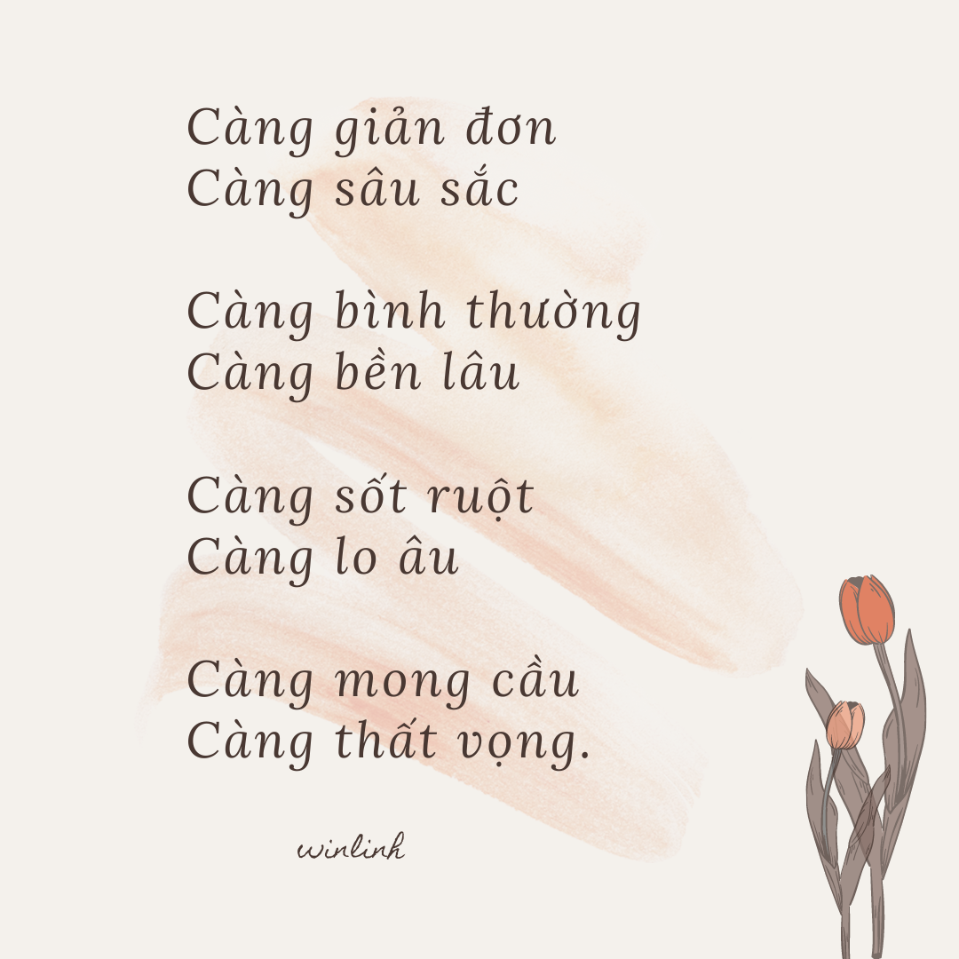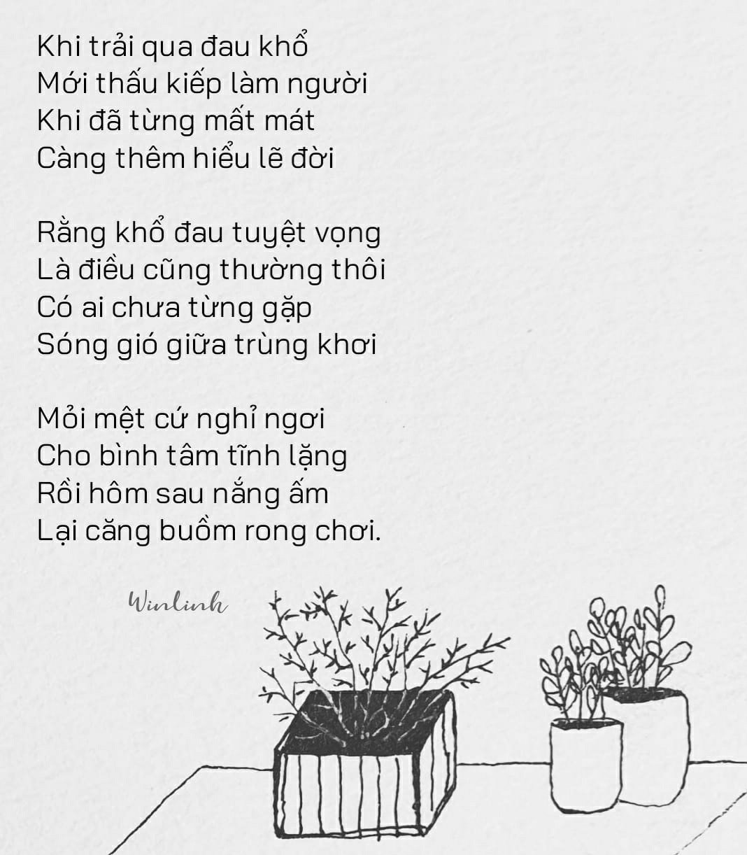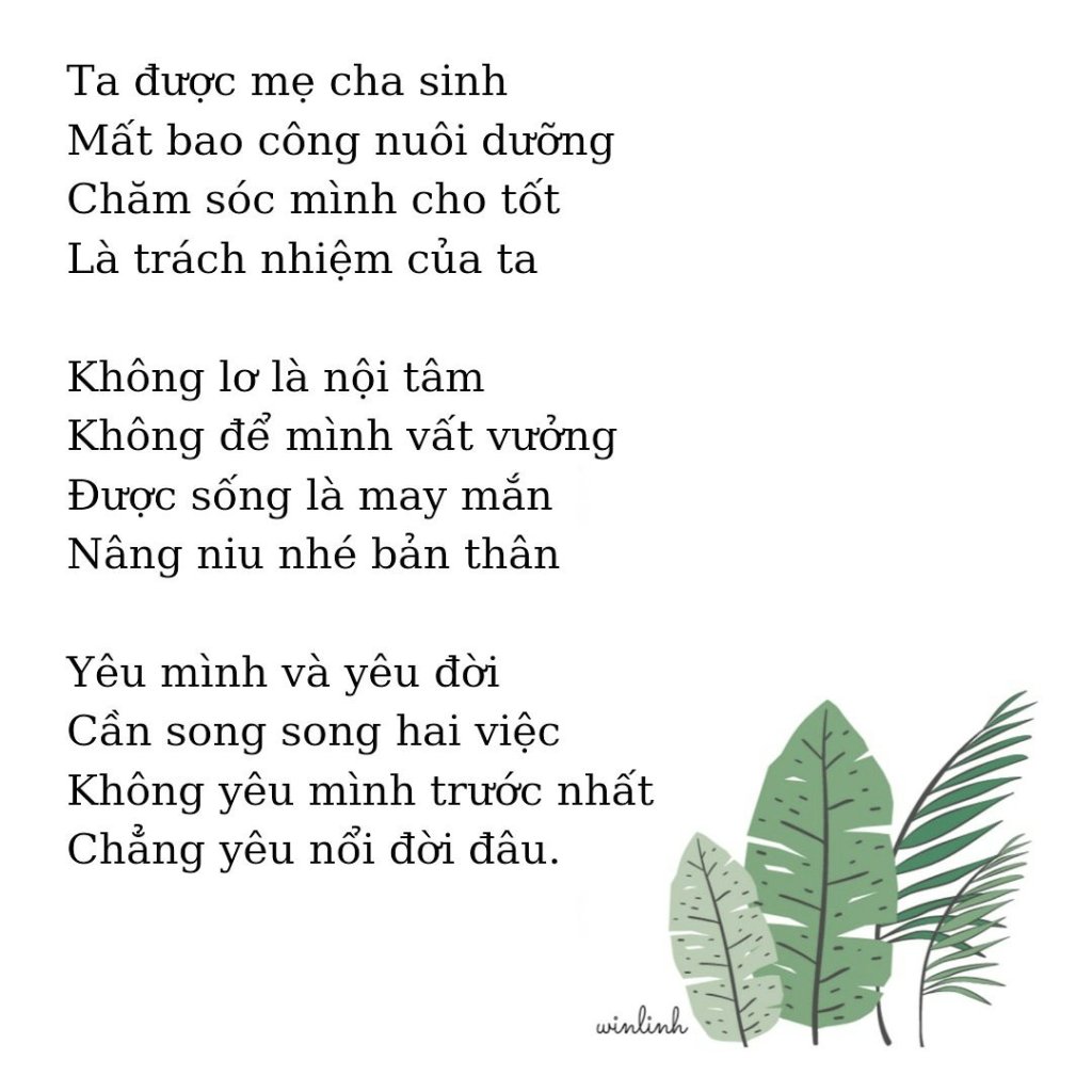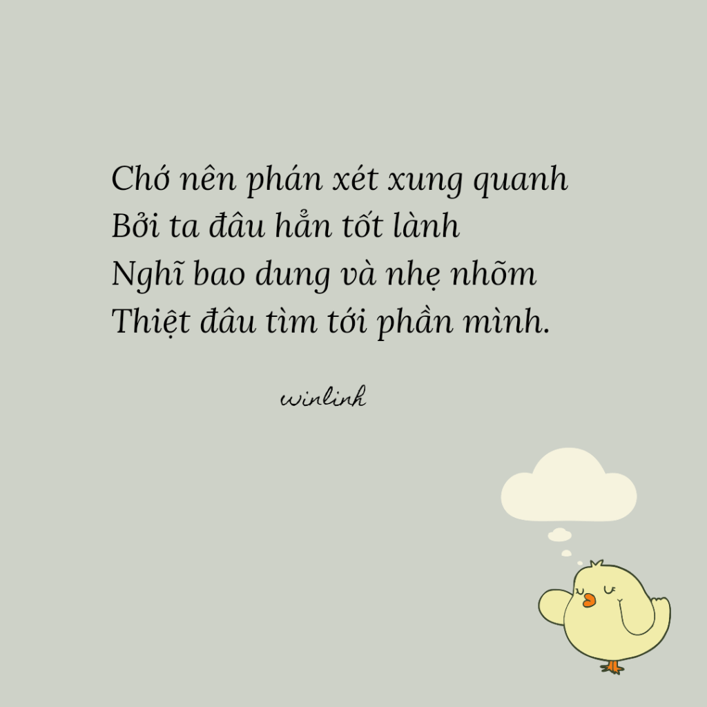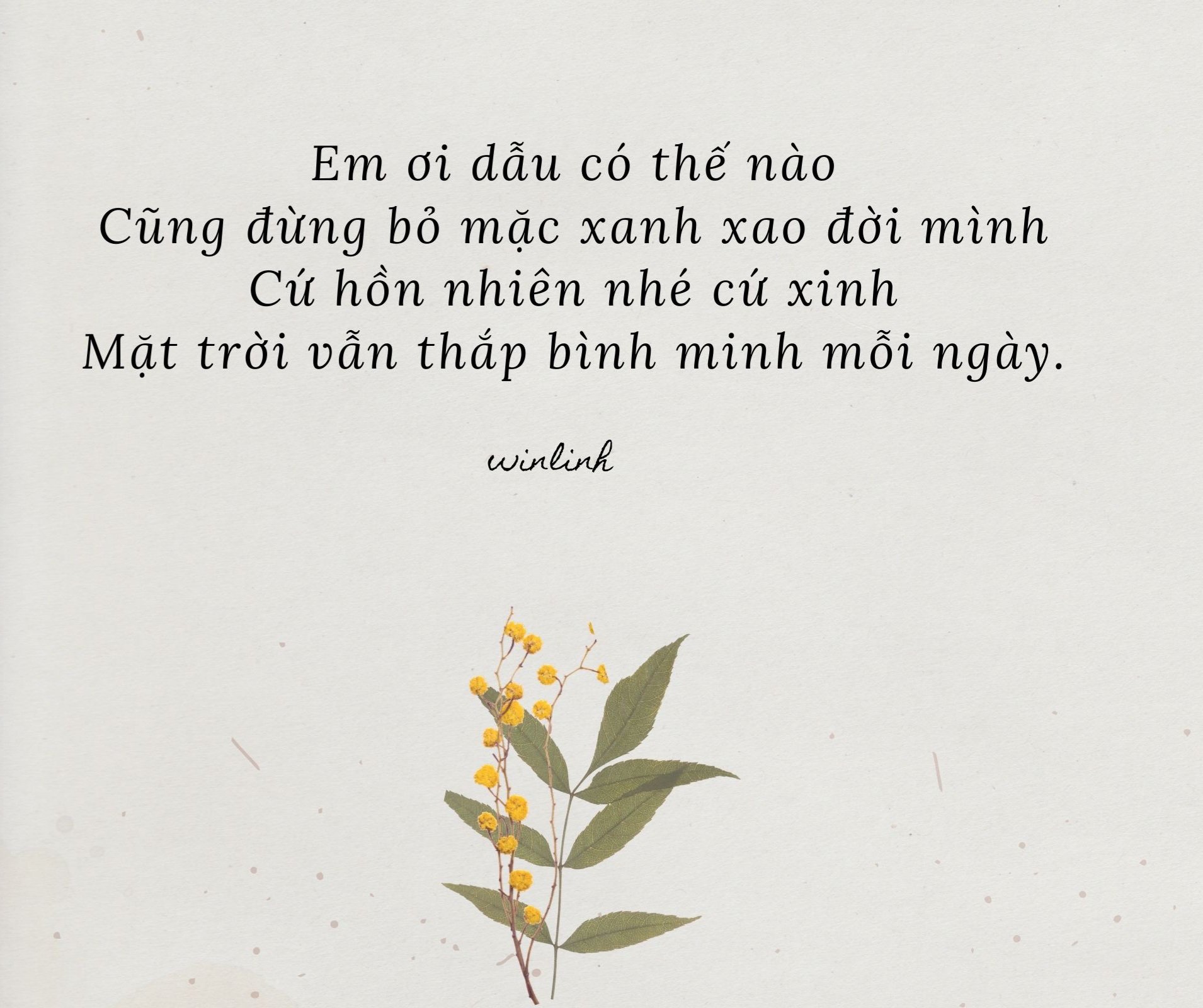 Gần đây có vài bạn hỏi mình sao không đặt tựa đề cho thơ, thơ chả có tên gì cả. Ừ đúng là mình không đặt tựa đề nhỉ! Mình đã trả lời các bạn rằng lâu không đặt thành quen, vả lại cũng không muốn thêm tựa để người đọc lại phải mặc định ý nghĩ theo cái tựa mình đặt. Vì một cái tựa mà đặt không chuẩn đôi khi lại làm hạn hẹp cả nội dung bên trong. Vậy nên chả đặt nữa, thơ cứ luẩn quẩn nhỏ bé có mấy nội dung thôi mà đặt tựa đề rồi thể nào cũng bị trùng lặp.