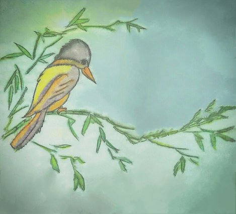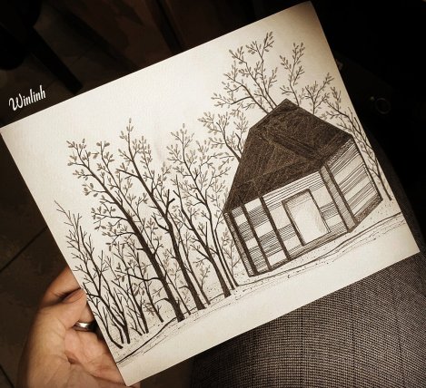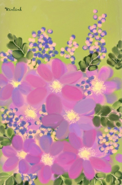 Thế rồi một bức vẽ đã hoàn thành vào tối nay và nó khiến tôi nhớ đến bài “Mùa xuân xanh” của thi sĩ Nguyễn Bính, nhà thơ có nhiều tác phẩm tôi rất yêu thích.